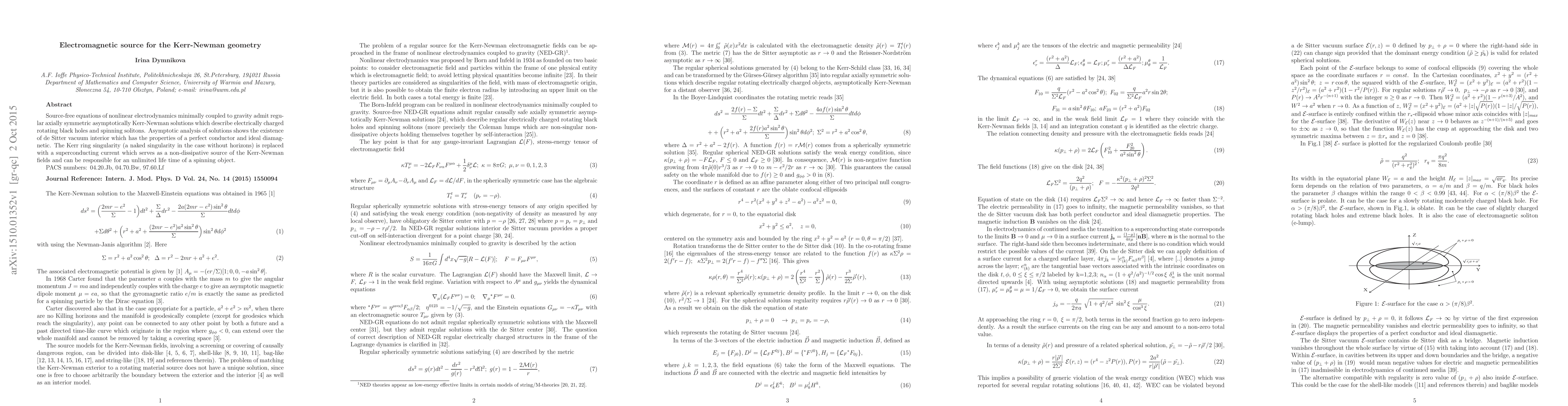 Research finds a new source for the Kerr-Newman geometry, suggesting that electrically charged rotating black holes may have an unlimited lifetime due to a superconducting current, and a perfect conductor-like de Sitter vacuum interior.