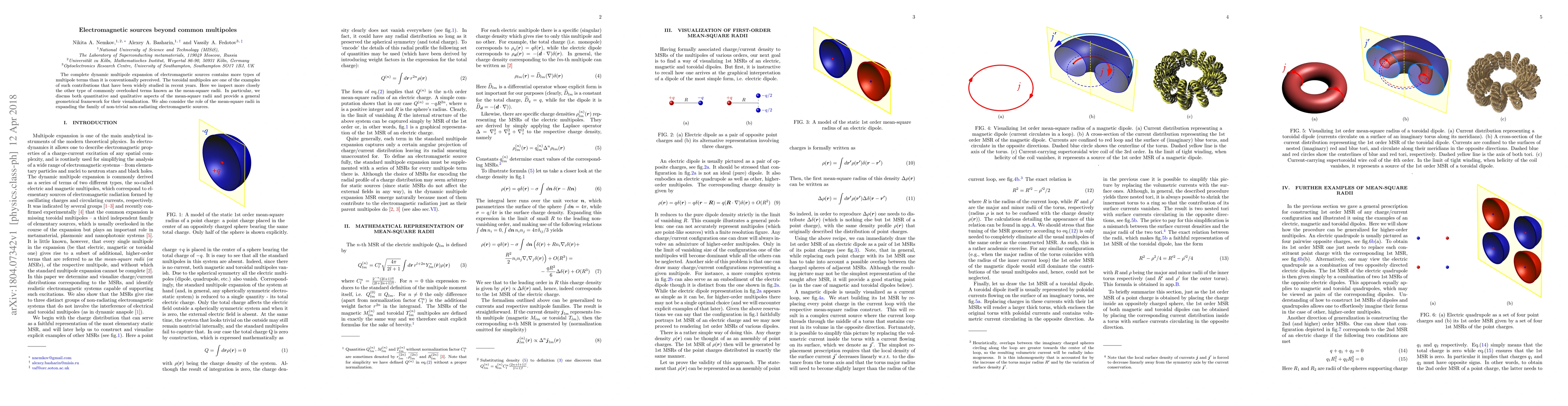 The complete dynamic multipole expansion of electromagnetic sources contains more types of multipole terms than it is conventionally perceived. The toroidal multipoles are one of the examples of such contributions that have been widely studied in recent years. Here we inspect more closely the other type of commonly overlooked terms known as the mean-square radii. In particular, we discuss both quantitative and qualitative aspects of the mean-square radii and provide a general geometrical framework for their visualization. We also consider the role of the mean-square radii in expanding the family of non-trivial non-radiating electromagnetic sources.