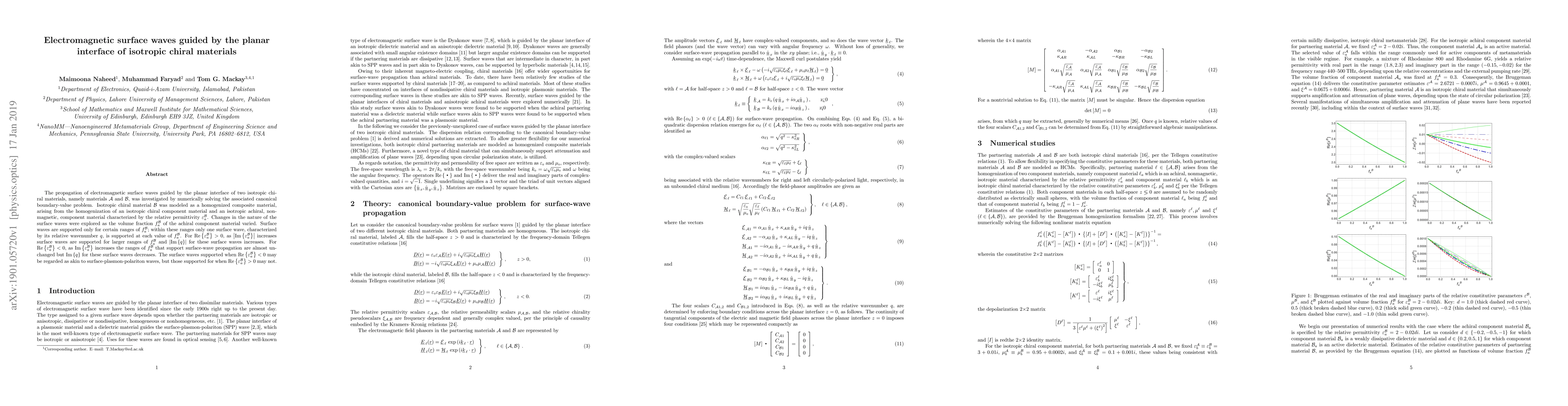 This paper investigates electromagnetic surface waves guided by the interface of two isotropic chiral materials, $\calA$ and $\calB$. Numerical analysis reveals that $\calB$'s composite nature affects surface wave propagation, with only specific volume fractions of its achiral component supporting waves, altering wave characteristics based on the component's permittivity.
