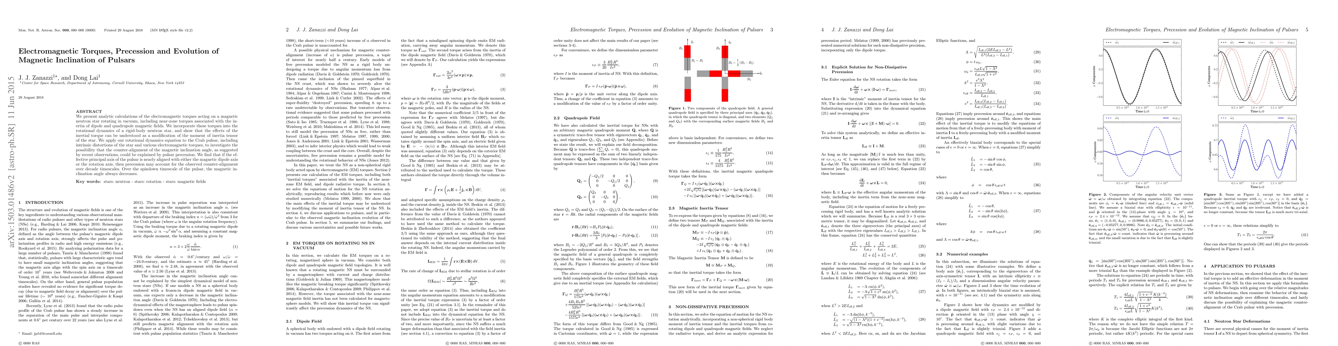 This paper analyzes electromagnetic torques on rotating magnetic neutron stars, showing how they modify the star's moment of inertia tensor. It applies these findings to the Crab pulsar, suggesting that precession may explain the observed counter-alignment of magnetic inclination angles over decade timescales.