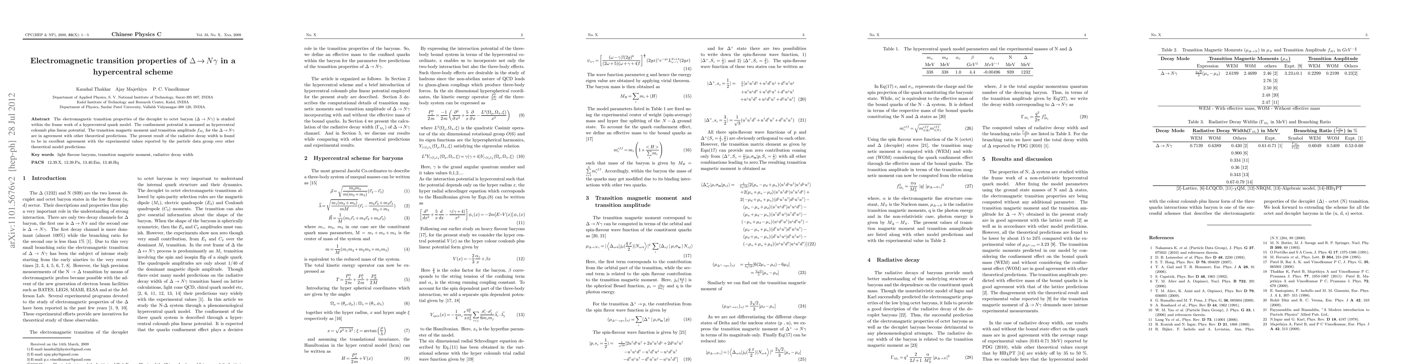 This paper investigates the electromagnetic transition properties of $\Delta \rightarrow N\gamma$ within a hypercentral quark model, finding that the transition magnetic moment and amplitude $f_{M_1}$ align with theoretical predictions, and the radiative decay width matches experimental data from the Particle Data Group.