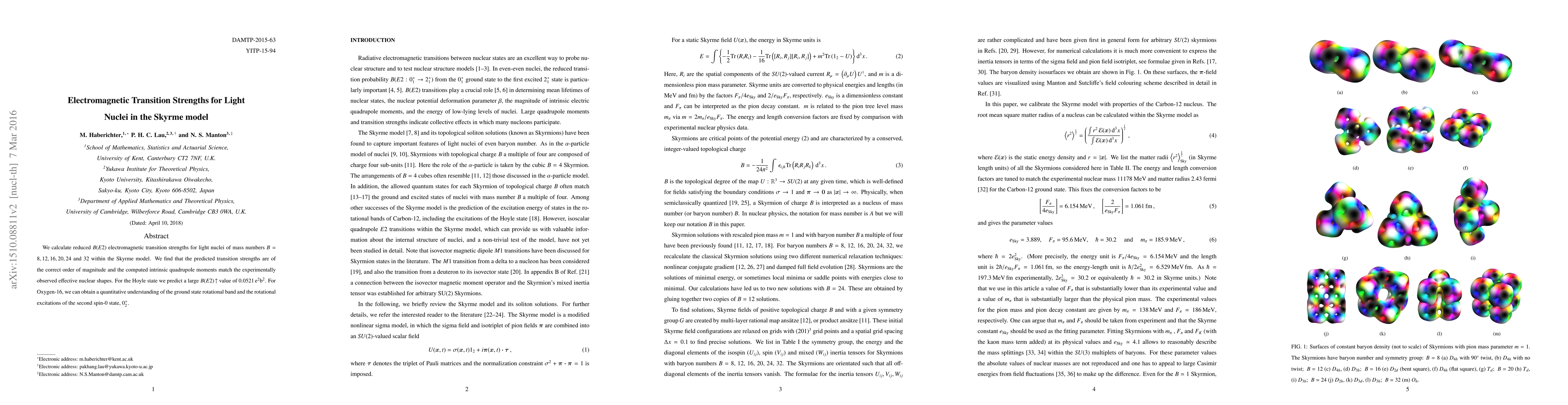 We calculate reduced $B(E2)$ electromagnetic transition strengths for light nuclei of mass numbers $B=8,12,16,20,24$ and $32$ within the Skyrme model. We find that the predicted transition strengths are of the correct order of magnitude and the computed intrinsic quadrupole moments match the experimentally observed effective nuclear shapes. For the Hoyle state we predict a large $B(E2)\!\uparrow$ value of $0.0521\, \rm{e}^2\rm{b}^2$. For Oxygen-16, we can obtain a quantitative understanding of the ground state rotational band and the rotational excitations of the second spin-0 state, $0_2^+$.