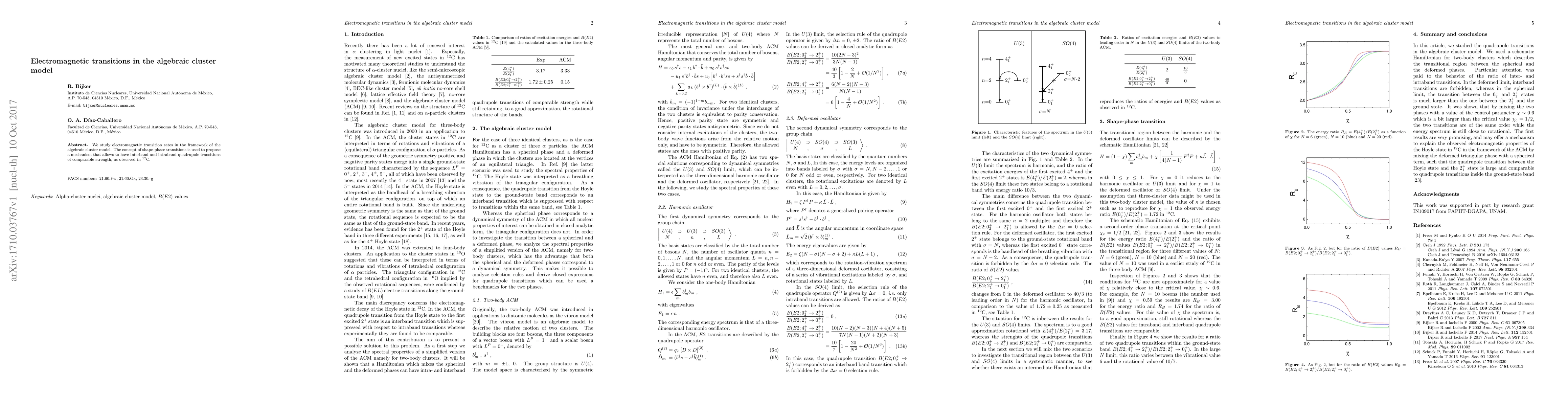 This paper investigates electromagnetic transitions in the algebraic cluster model, proposing a mechanism for comparable interband and intraband quadrupole transitions as observed in 12C.