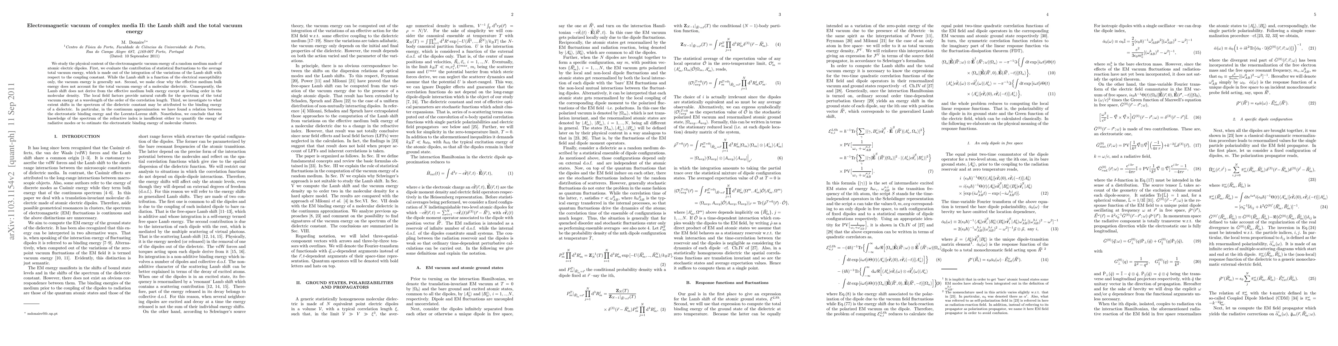This paper studies the electromagnetic vacuum energy of complex media made of atomic electric dipoles, highlighting its relation to statistical fluctuations and the Lamb shift, as well as limitations in estimating the binding energy of molecular clusters.