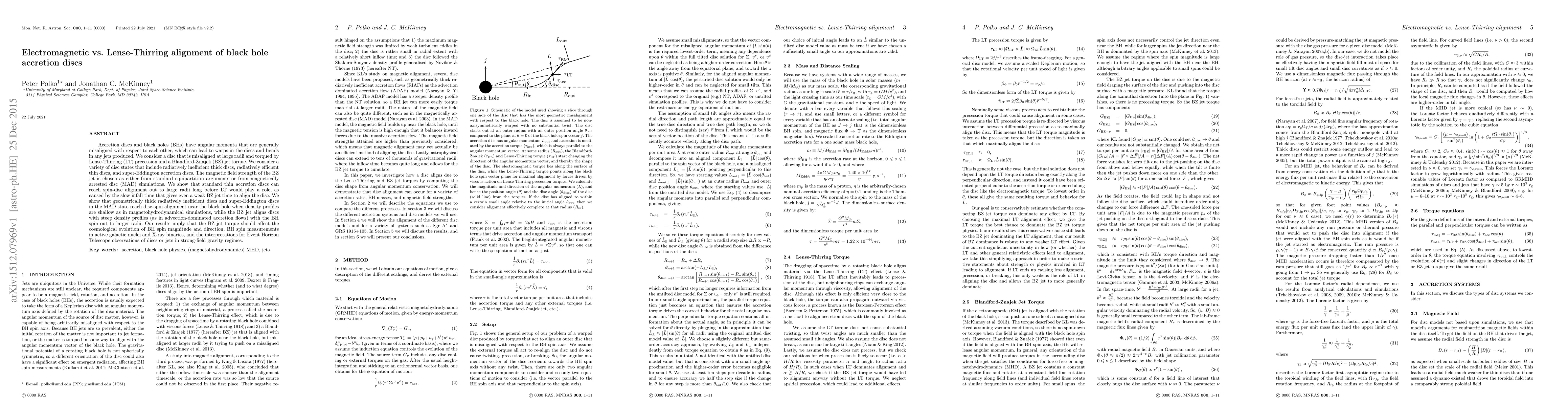 This research investigates how electromagnetic forces, specifically Blandford-Znajek jet torque, and Lense-Thirring precession affect the alignment of accretion discs with their black hole spins. It finds that electromagnetic torques generally align discs with black holes at larger radii, influencing cosmological evolution, BH spin measurements, and interpretations of observational data.