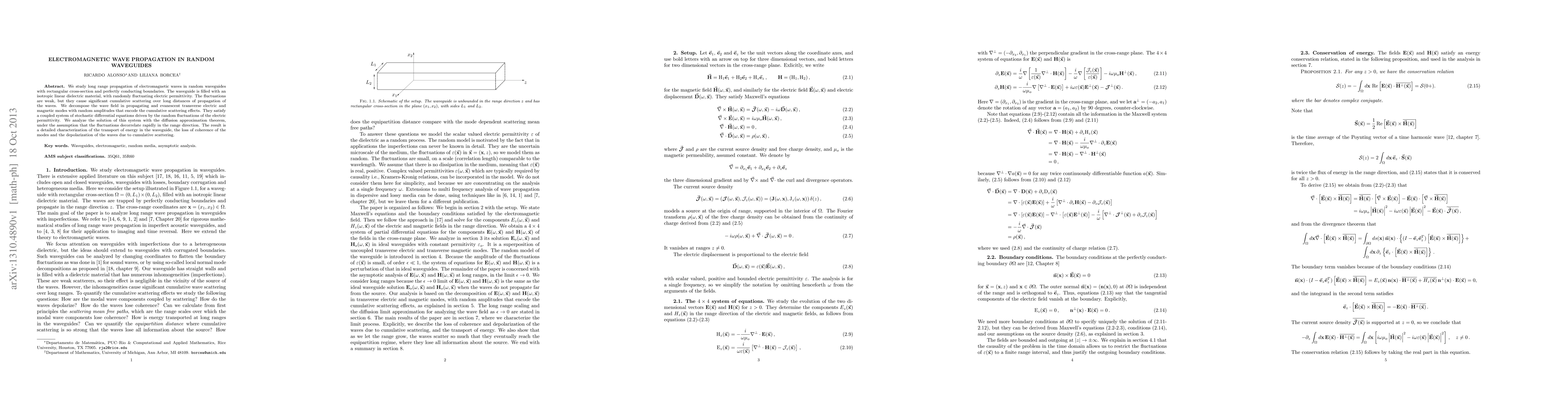 This paper investigates the long-range propagation of electromagnetic waves in random rectangular waveguides with conducting boundaries and dielectric material exhibiting weak, random fluctuations in electric permittivity. The study characterizes energy transport, mode coherence loss, and wave depolarization through a coupled system of stochastic differential equations and the diffusion approximation theorem.