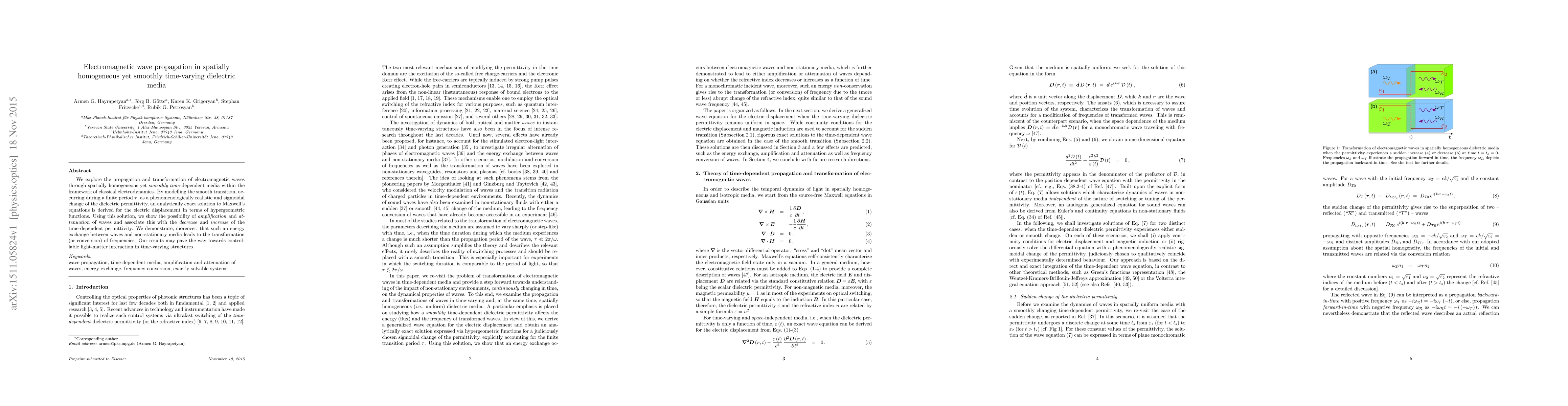 This paper derives an analytically exact solution for electromagnetic wave propagation in smoothly time-varying dielectric media, showing wave amplification/attenuation and frequency transformation due to the time-dependent permittivity, potentially enabling controllable light-matter interaction.