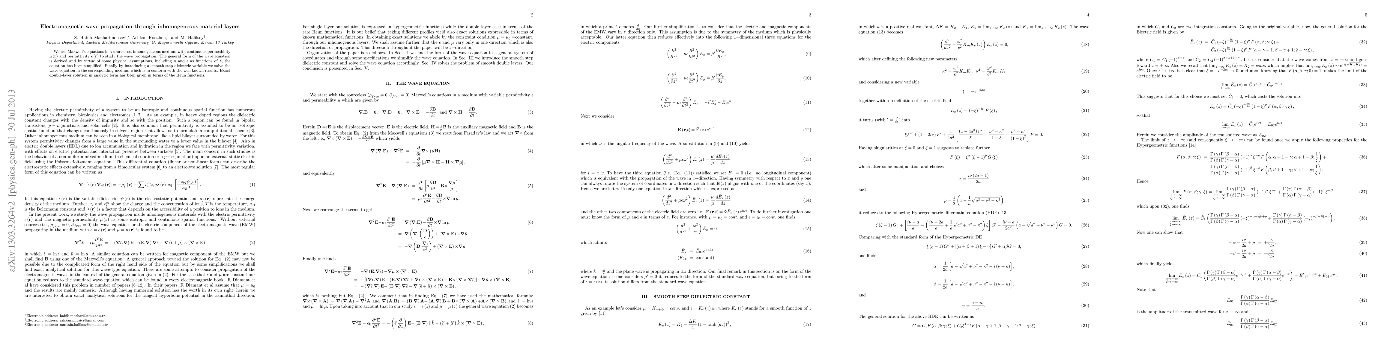 Researchers used Maxwell's equations to study wave propagation through inhomogeneous material layers, simplifying the equation and finding an exact double-layer solution using Heun functions.