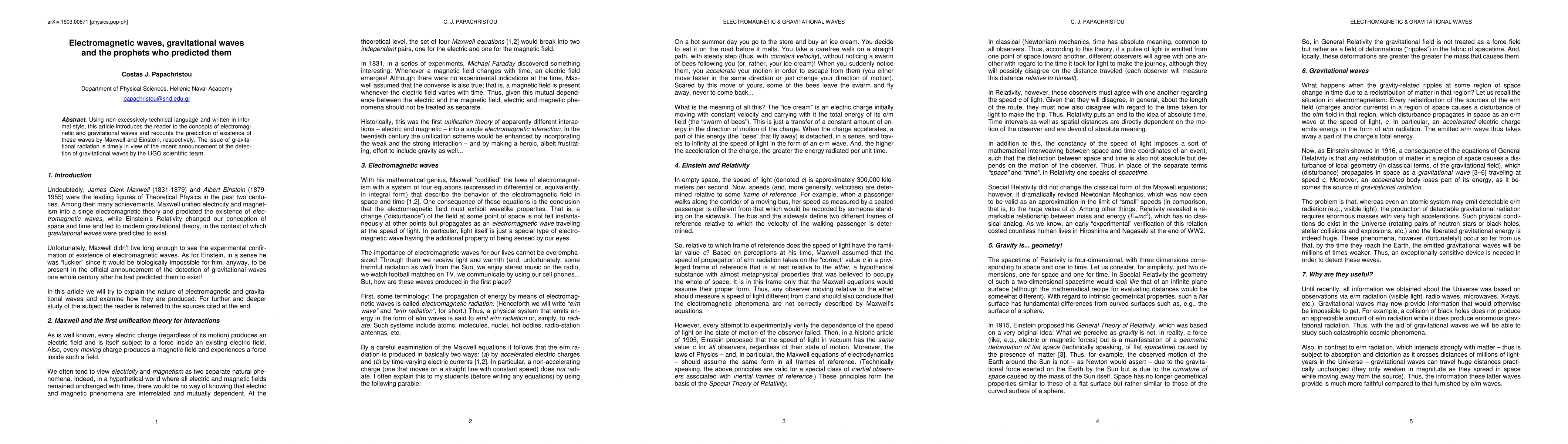 This article explains electromagnetic and gravitational waves in an accessible manner, highlighting their predictions by Maxwell and Einstein, and notes the recent LIGO detection of gravitational waves.