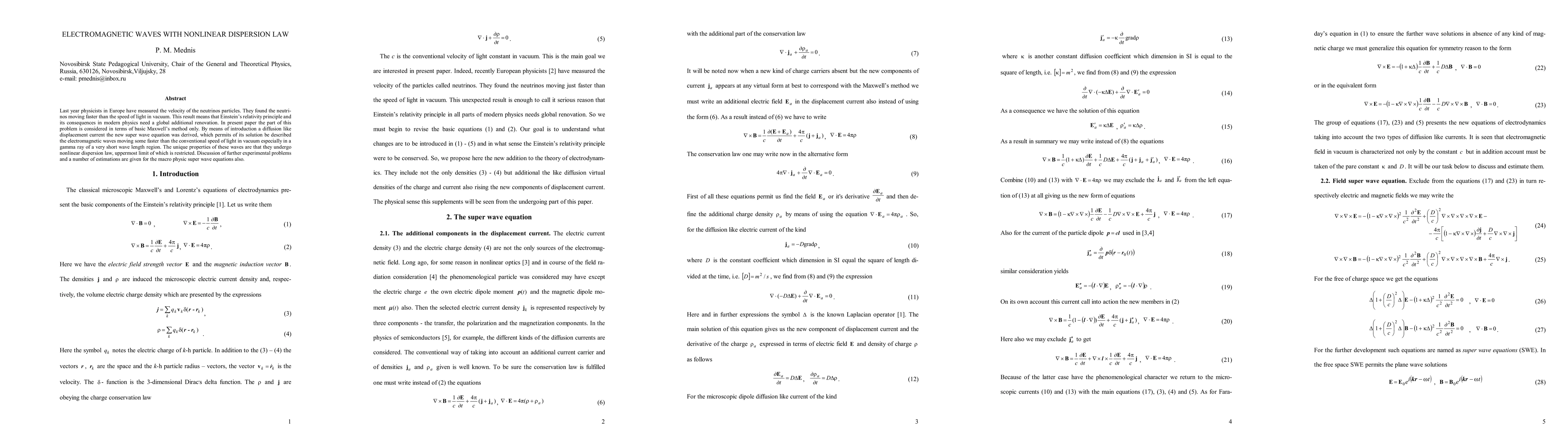 Researchers derived a new super wave equation that describes electromagnetic waves moving faster than light, with unique properties including nonlinear dispersion law. This challenge to Einstein's relativity principle highlights the need for global renovations in modern physics.