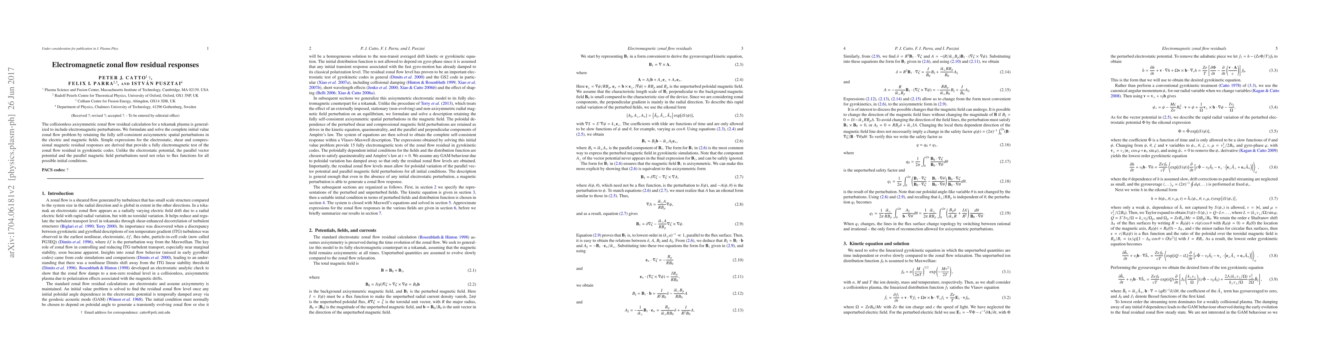 This paper generalizes the calculation of electromagnetic zonal flow residuals in tokamak plasmas to include electromagnetic perturbations, providing complete initial value solutions with self-consistent axisymmetric spatial perturbations. It derives expressions for electromagnetic residual responses to test zonal flow in gyrokinetic codes, noting that not all perturbations relax to flux functions.