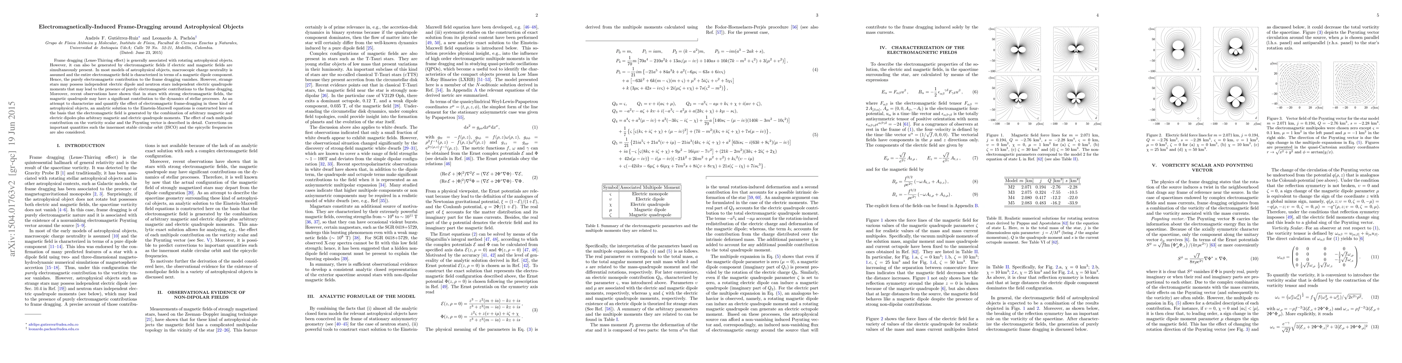 This paper explores electromagnetically-induced frame-dragging around astrophysical objects, focusing on strange stars and neutron stars that possess independent electric dipole and quadrupole moments. An analytic solution to the Einstein-Maxwell equations reveals contributions from these moments to frame dragging, impacting the vorticity scalar, Poynting vector, and ISCO, alongside cyclic frequencies.