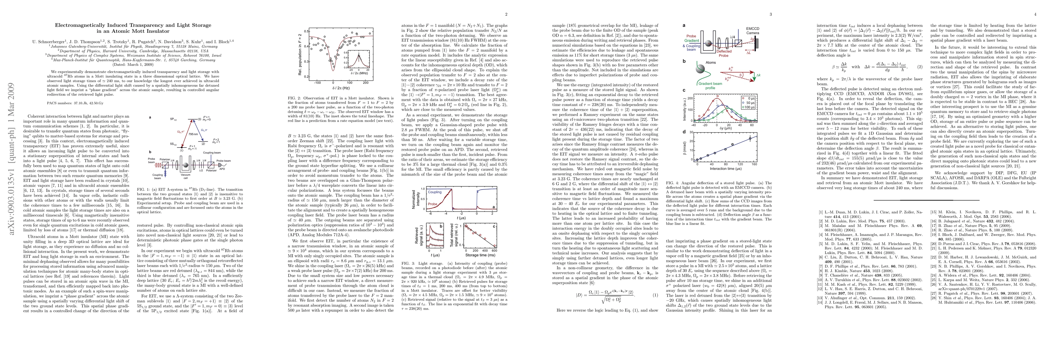 Summary: Researchers demonstrate electromagnetically induced transparency and light storage in ultracold 87Rb atoms within a three-dimensional optical lattice, achieving a record 240 ms storage time. They control the redirection of retrieved light using a phase gradient induced by a spatially inhomogeneous light field.