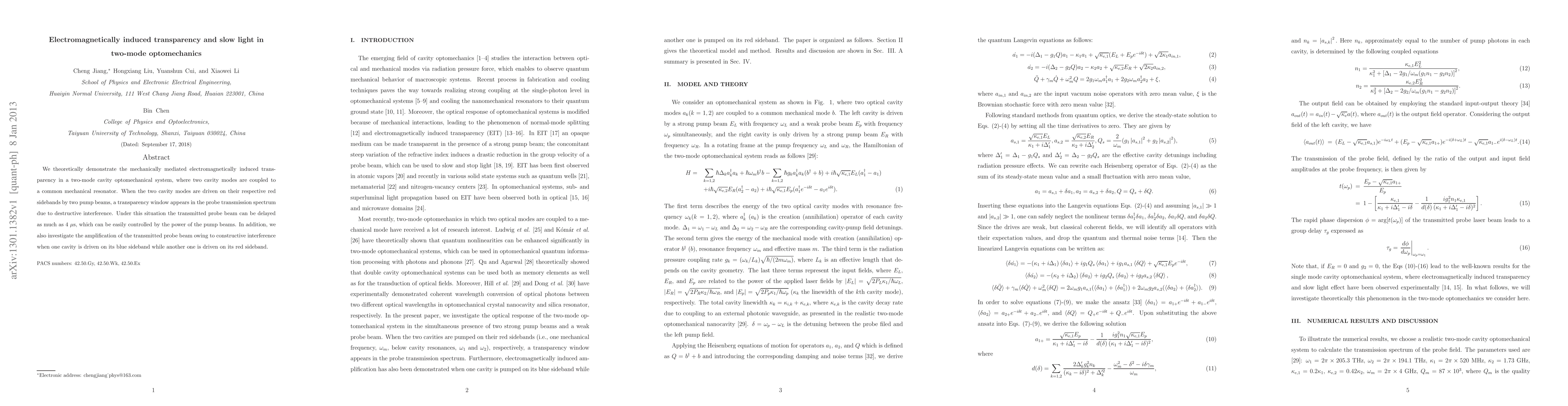 Researchers demonstrated electromagnetically induced transparency in a two-mode optomechanical system, creating a 'slow light' effect where probe beams can be delayed up to 4 us.