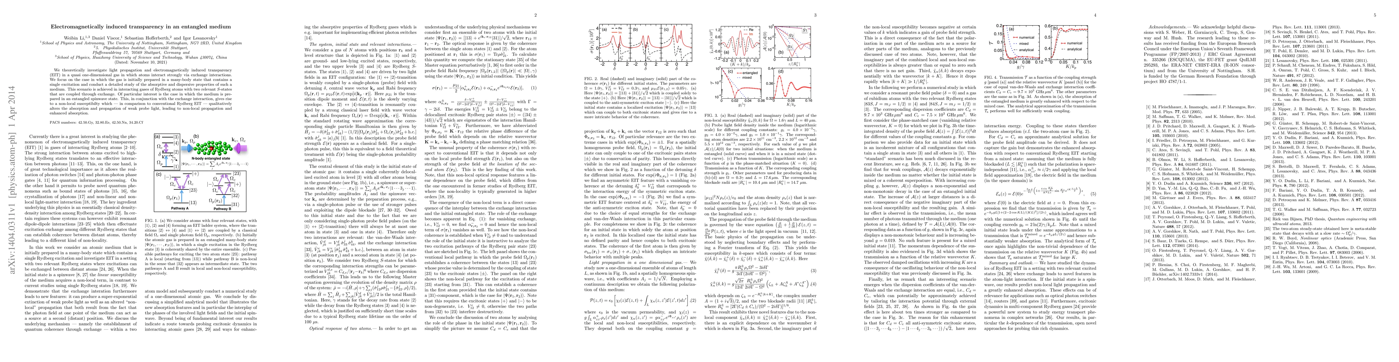 This paper explores electromagnetically induced transparency (EIT) in entangled Rydberg gases, showing that exchange interactions in a many-body entangled state significantly alter absorptive and dispersive properties, leading to non-local light propagation and enhanced absorption.