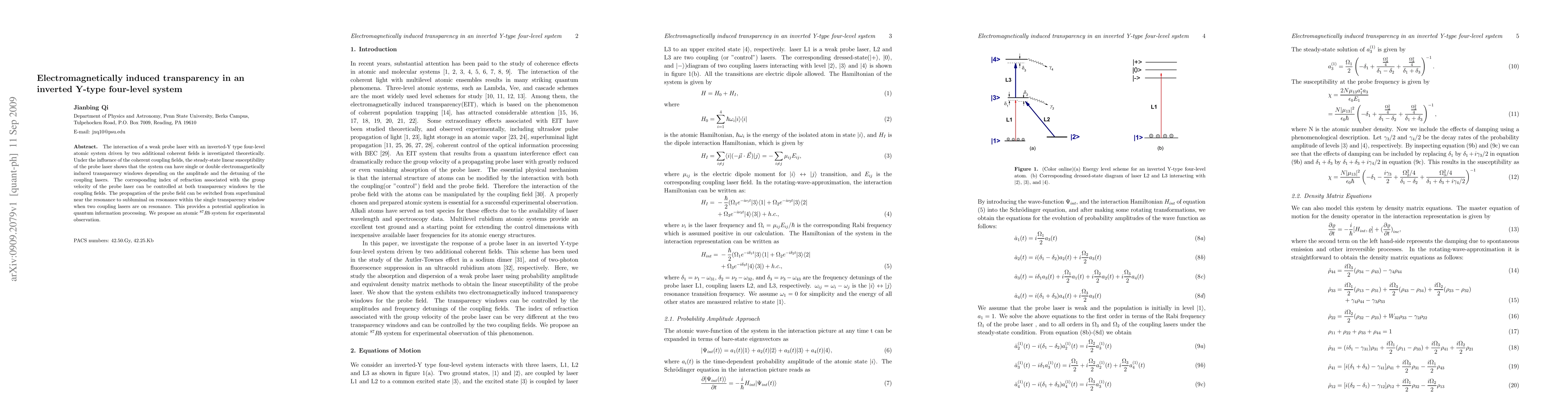 This paper theoretically explores electromagnetically induced transparency (EIT) in an inverted Y-type four-level atomic system under coherent coupling fields, showing single or double EIT windows based on coupling laser parameters. The study suggests control over the probe laser's group velocity and potential applications in quantum information processing, with $^{87}Rb$ proposed for experimental validation.