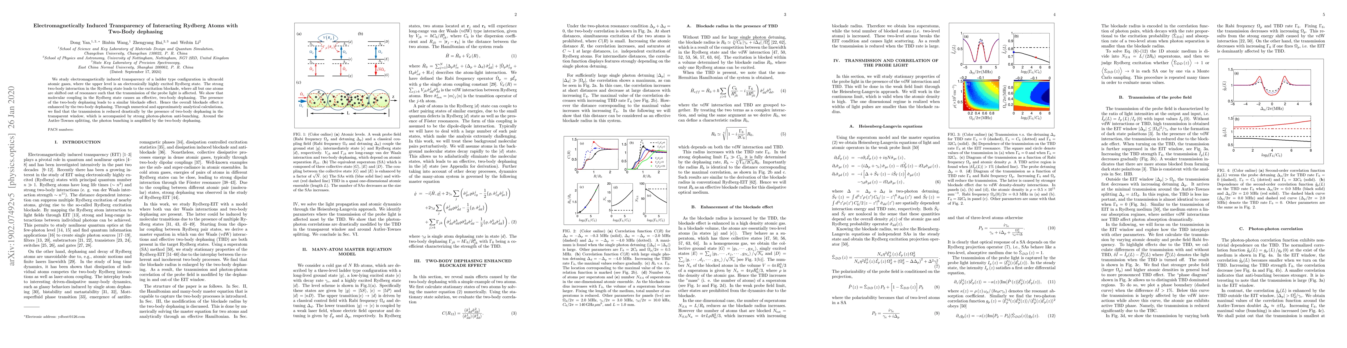 This paper explores electromagnetically induced transparency in ultracold atomic gases with Rydberg atoms, demonstrating how strong two-body interactions lead to excitation blockade and enhanced transparency effects due to two-body dephasing, resulting in significant reductions in probe light transmission and photon-photon anti-bunching.