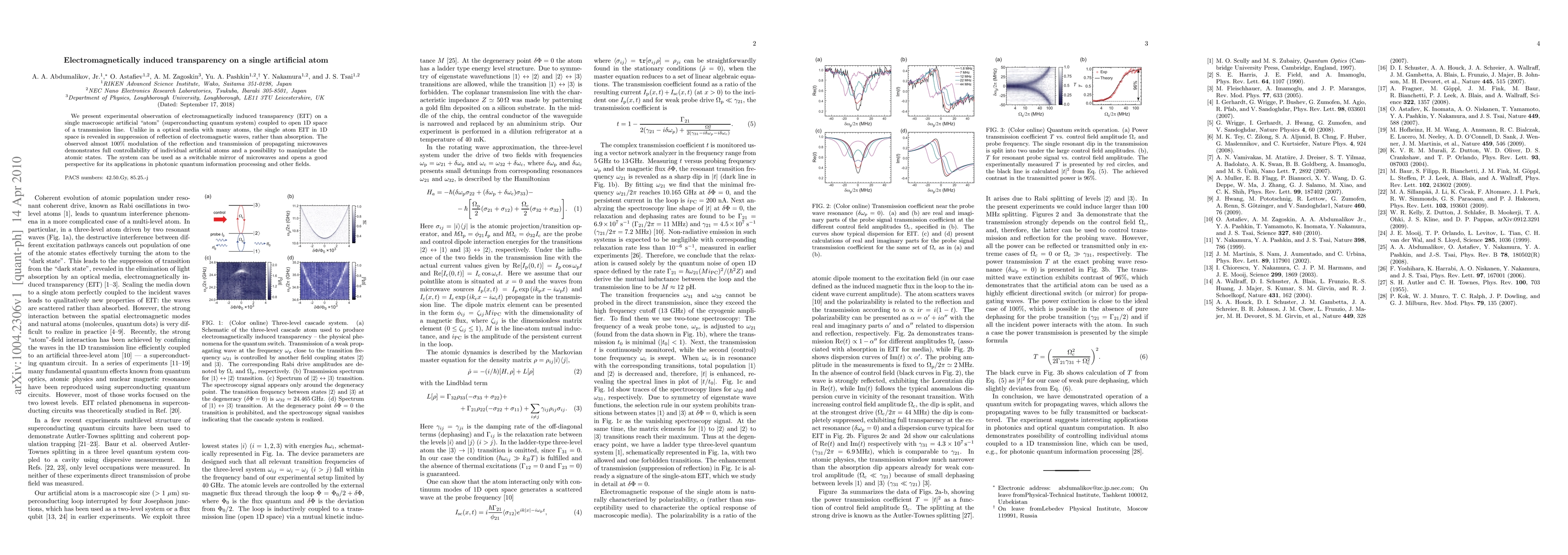 This research experimentally demonstrates electromagnetically induced transparency (EIT) on a single macroscopic artificial atom (superconducting quantum system) within a 1D transmission line, showing almost 100% modulation in microwave reflection and transmission, highlighting potential for microwave switchable mirrors and applications in quantum information processing.