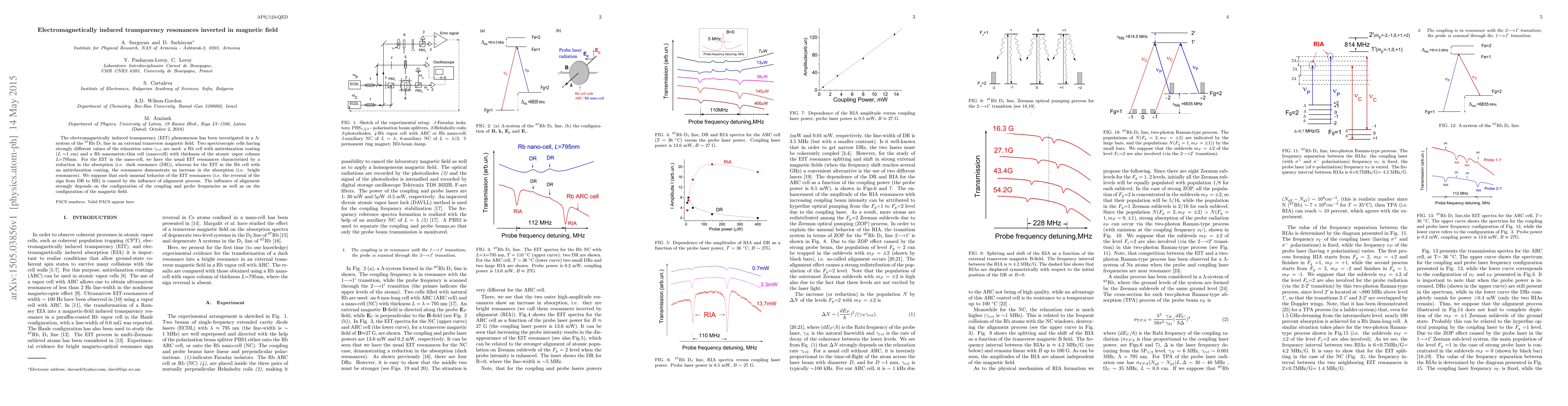 This study investigates electromagnetically induced transparency (EIT) in a $\Lambda$-system of the $^{87}$Rb D$_1$ line under a transverse magnetic field, revealing inverted EIT resonances: dark in a nano-cell and bright in a Rb cell with antirelaxation coating. The reversal in EIT behavior is attributed to the influence of the alignment process, which is dependent on coupling and probe frequencies and magnetic field configuration.
