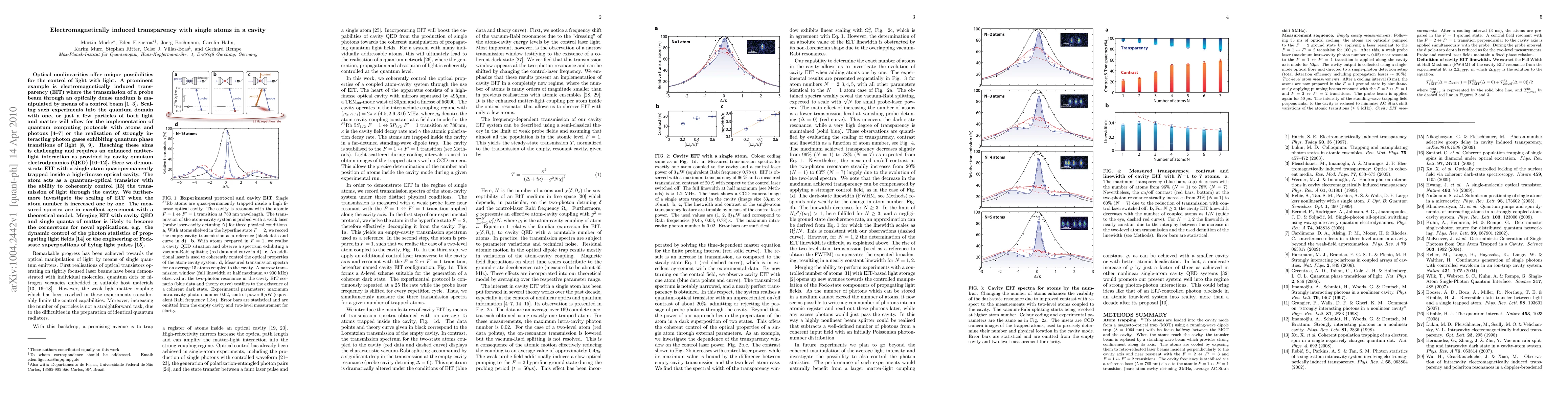 This paper demonstrates electromagnetically induced transparency (EIT) with a single atom trapped in an optical cavity, showcasing its role as a quantum-optical transistor. It explores scaling EIT with increased atom numbers and aligns measured spectra with theoretical models, highlighting potential for quantum computing and dynamic photon statistics control.