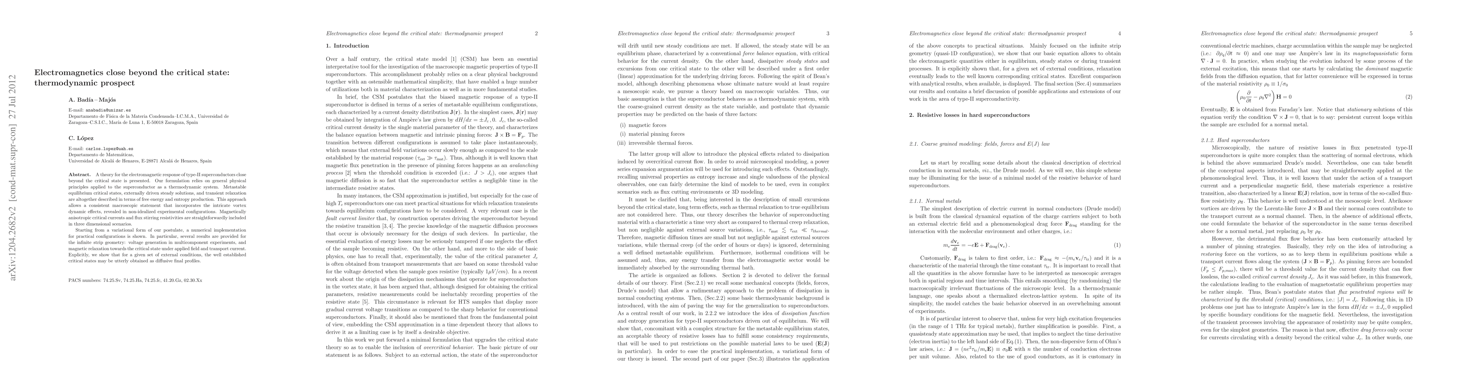 A theory for the electromagnetic response of type-II superconductors close beyond the critical state is presented. Our formulation relies on general physical principles applied to the superconductor as a thermodynamic system. Equilibrium critical states, externally driven steady solutions, and transient relaxation are altogether described in terms of free energy and entropy production. This approach allows a consistent macroscopic statement that incorporates the intricate vortex dynamic effects, revealed in non-idealized experimental configurations. Magnetically anisotropic critical currents and flux stirring resistivities are straightforwardly included in three dimensional scenarios. Starting from a variational form of our postulate, a numerical implementation for practical configurations is shown. In particular, several results are provided for the infinite strip geometry: voltage generation in multicomponent experiments, and magnetic relaxation towards the critical state under applied field and transport current. Explicitly, we show that for a given set of external conditions, the well established critical states may be utterly obtained as diffusive final profiles.