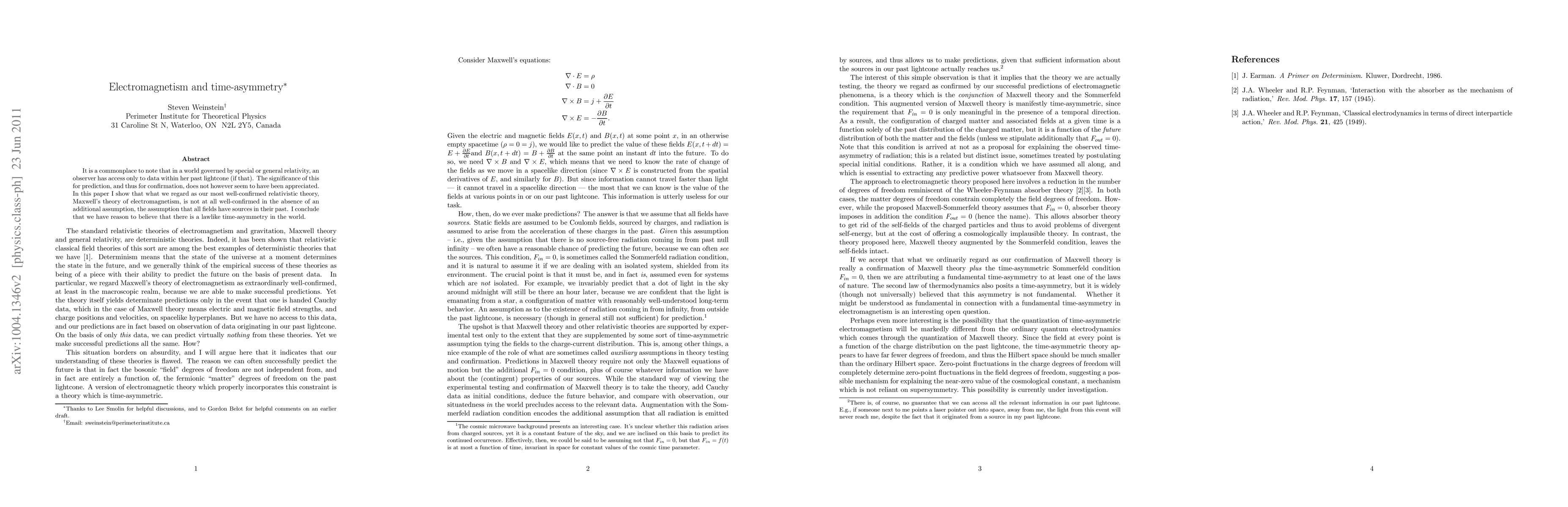 This work presents a novel approach to understanding time-asymmetry in electromagnetism and has potential implications for our understanding of the universe's evolution.