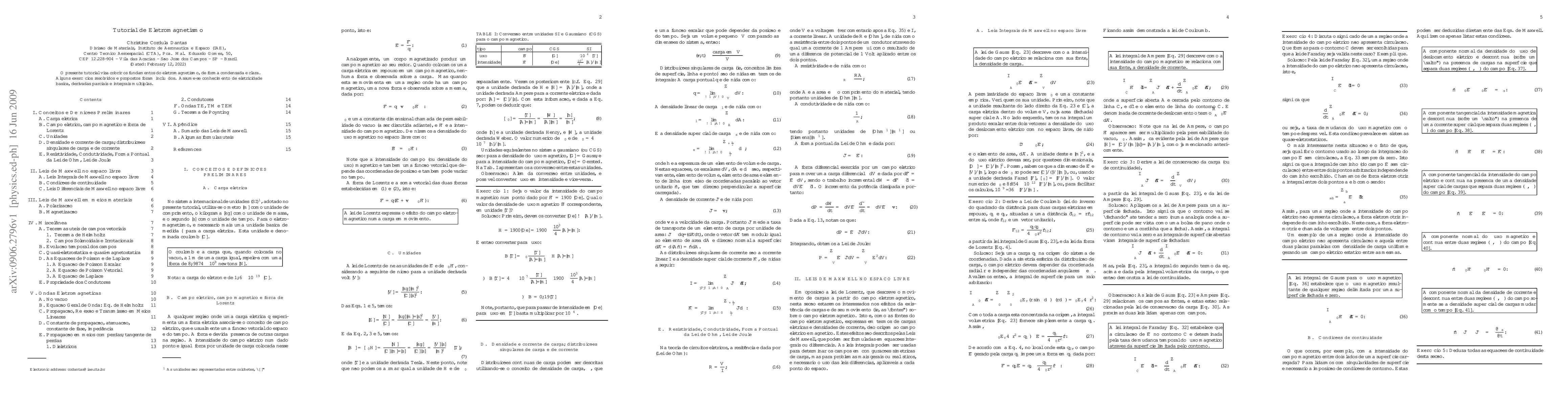 The paper presents a tutorial on the fundamentals of electromagnetism, covering essential concepts in a condensed and clear manner, assuming basic knowledge of electricity, partial derivatives, and multiple integrals.