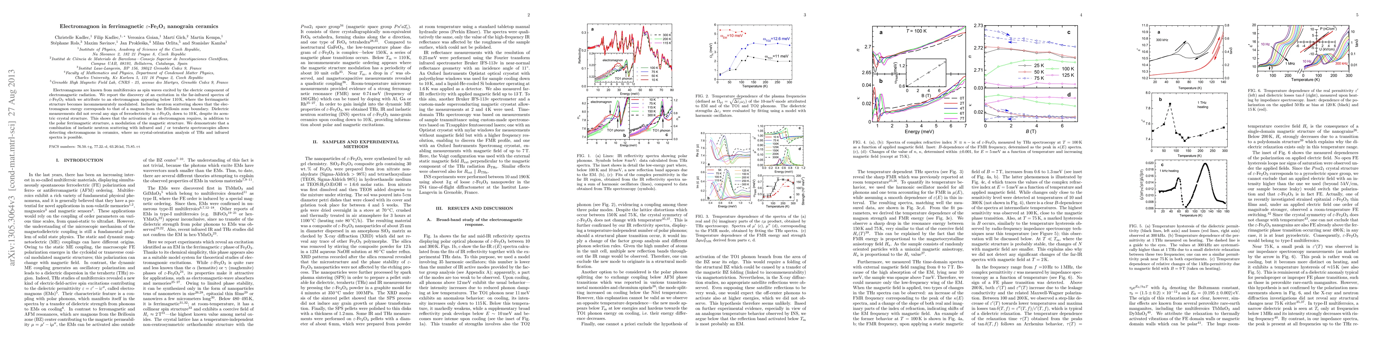 Electromagnons are known from multiferroics as spin waves excited by the electric component of electromagnetic radiation. We report the discovery of an excitation in the far-infrared spectra of eps-Fe2O3 which we attribute to an electromagnon appearing below 110 K, where the ferrimagnetic structure becomes incommensurately modulated. Inelastic neutron scattering shows that the electromagnon energy corresponds to that of a magnon from the Brillouin zone boundary. Dielectric measurements did not reveal any sign of ferroelectricity in eps-Fe2O3 down to 10 K, despite its acentric crystal structure. This shows that the activation of an electromagnon requires, in addition to the polar ferrimagnetic structure, a modulation of the magnetic structure. We demonstrate that a combination of inelastic neutron scattering with infrared and / or terahertz spectroscopies allows detecting electromagnons in ceramics, where no crystal-orientation analysis of THz and infrared spectra is possible.