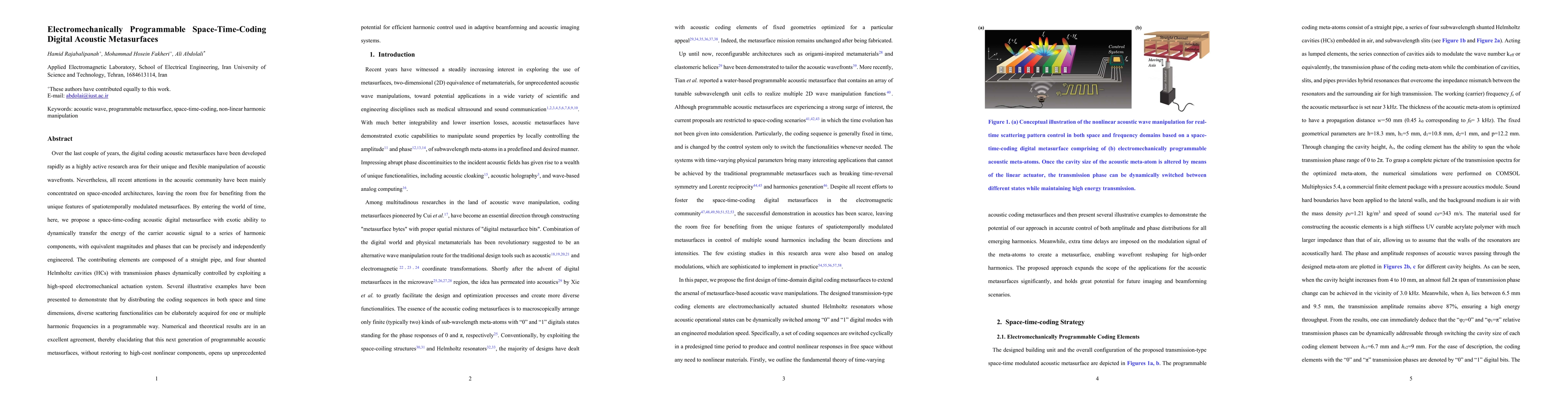 The research introduces space-time-coding digital acoustic metasurfaces, utilizing Helmholtz resonators with dynamically tunable transmission phases via an external electromechanical system controlled by time-coding sequences.