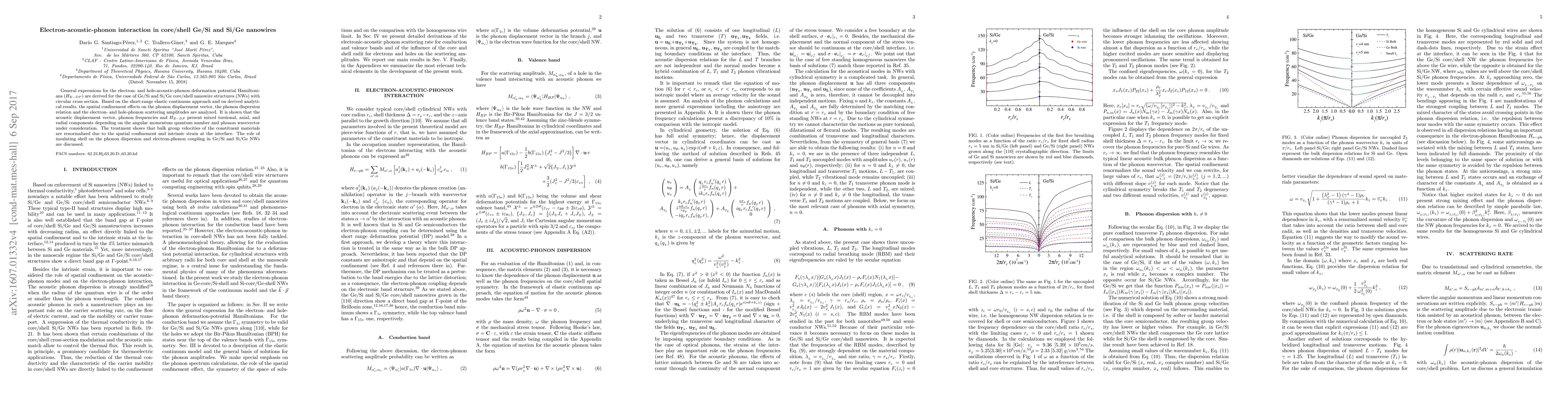 This paper derives the electron-acoustic phonon interaction Hamiltonian for Ge/Si and Si/Ge core/shell nanowires, analyzing how spatial confinement and intrinsic strain at the interface affect phonon frequencies and scattering amplitudes, revealing mixed torsional, axial, and radial components. It also discusses the influence of the insulating shell on phonon dispersion and electron-phonon coupling.