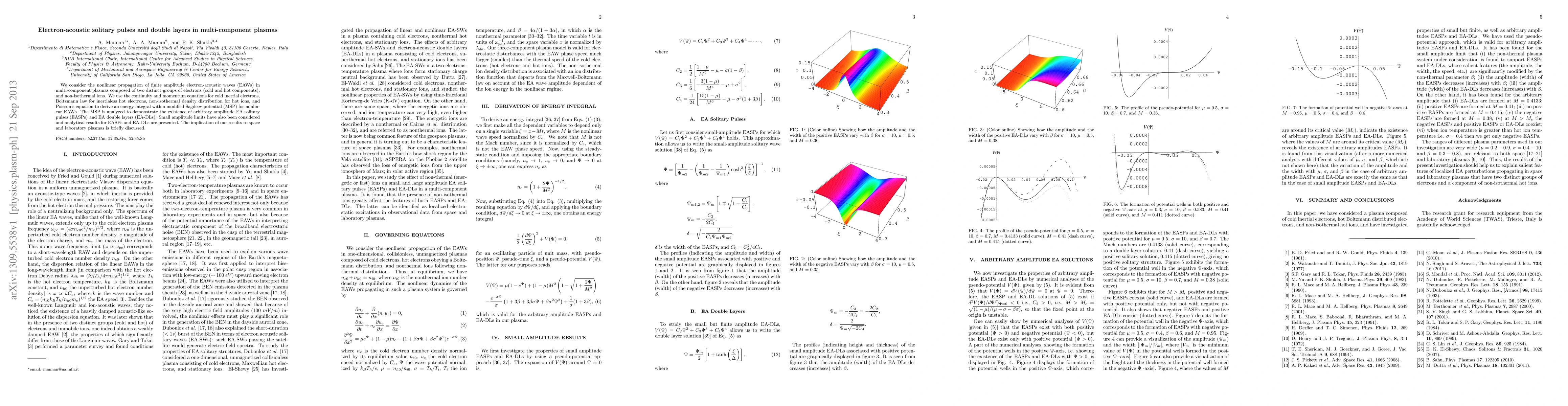 This paper investigates the nonlinear dynamics of electron-acoustic waves in multi-component plasmas, deriving an energy integral with a modified Sagdeev potential to demonstrate the existence of solitary pulses and double layers. Analytical results for these structures are provided, with implications for both space and laboratory plasmas.