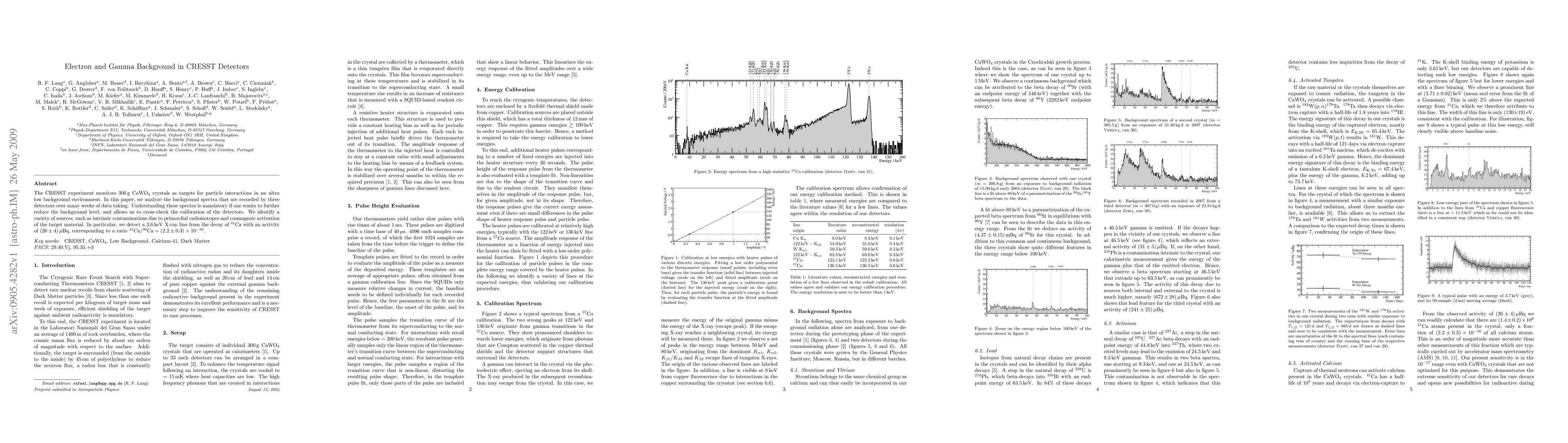 The CRESST experiment analyzes background spectra from CaWO_4 crystals to identify sources of electron and gamma radiation, including intrinsic contaminations and cosmogenic activation. A notable finding is the detection of a 3.6keV X-ray line from the decay of 41-Ca, indicating an activity ratio of 41-Ca/40-Ca of (2.2±0.3)×10^-16.