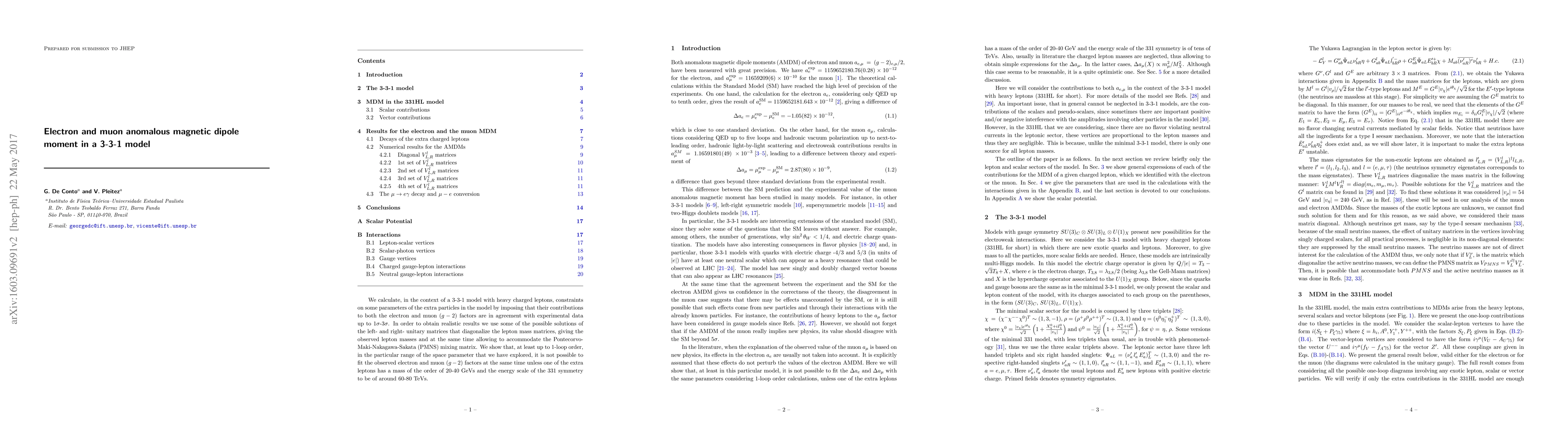 Researchers explore a 3-3-1 model to constrain extra particles that affect electron and muon magnetic dipole moments, finding that these particles' masses must be around 20-40 GeVs for the observed values of the anomaly to be accommodated.