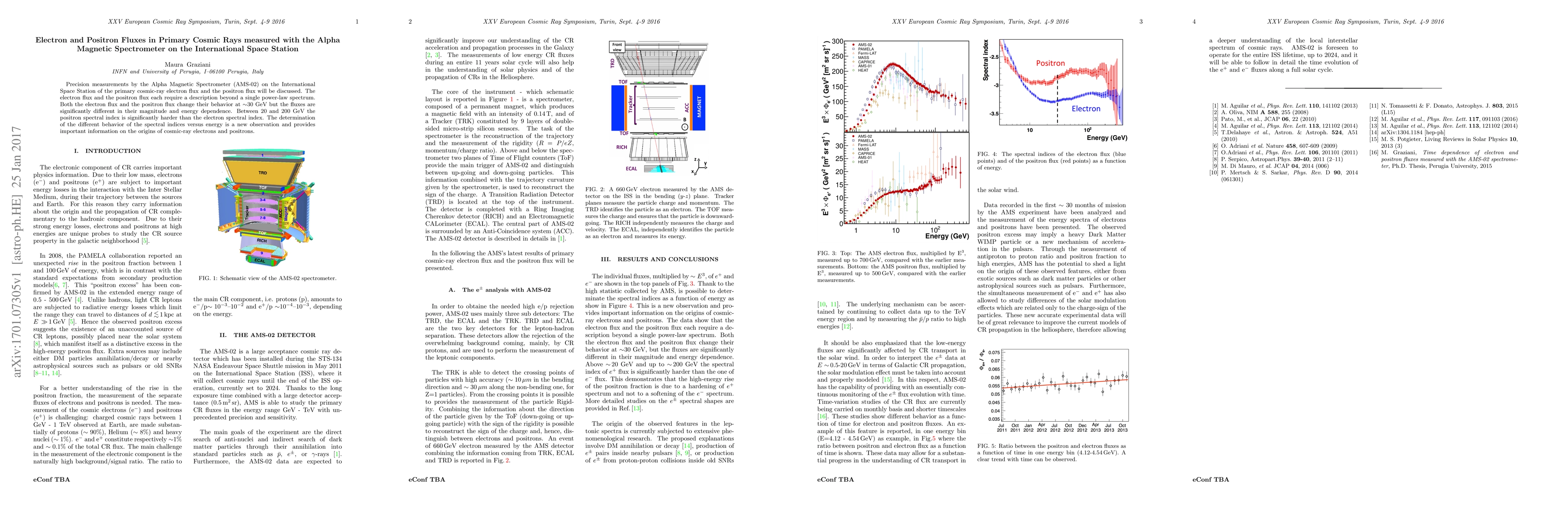 The Alpha Magnetic Spectrometer (AMS-02) on the International Space Station has measured the primary cosmic-ray electron and positron fluxes, revealing distinct spectral behaviors beyond a single power-law spectrum. Notably, both fluxes change behavior at ~30 GeV, with positrons showing a significantly harder spectral index than electrons between 20 and 200 GeV.
