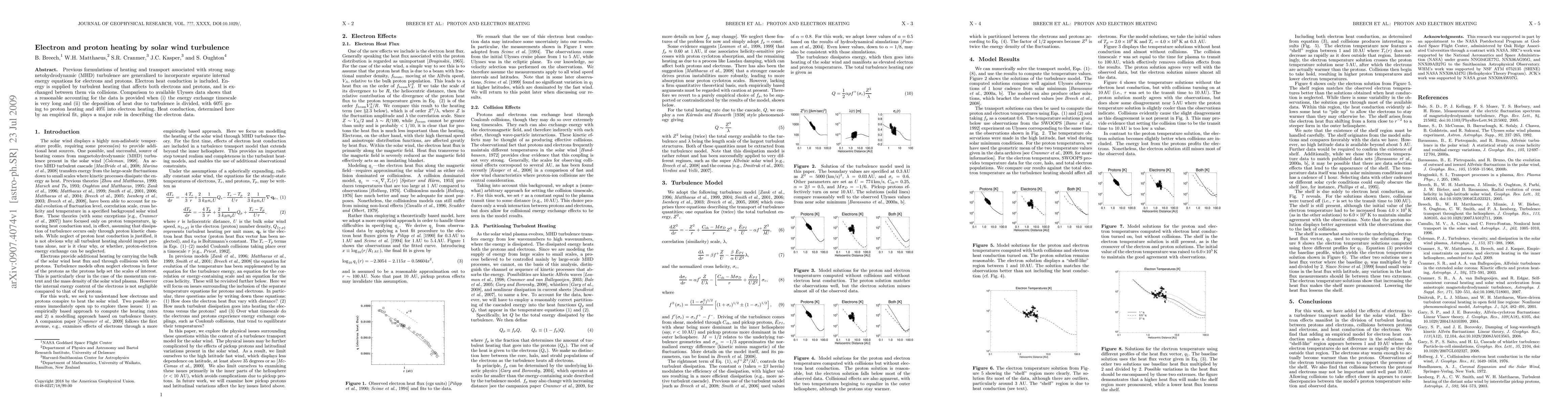 Previous formulations of heating and transport associated with strong magnetohydrodynamic (MHD) turbulence are generalized to incorporate separate internal energy equations for electrons and protons. Electron heat conduction is included. Energy is supplied by turbulent heating that affects both electrons and protons, and is exchanged between them via collisions. Comparison to available Ulysses data shows that a reasonable accounting for the data is provided when (i) the energy exchange timescale is very long and (ii) the deposition of heat due to turbulence is divided, with 60% going to proton heating and 40% into electron heating. Heat conduction, determined here by an empirical fit, plays a major role in describing the electron data.