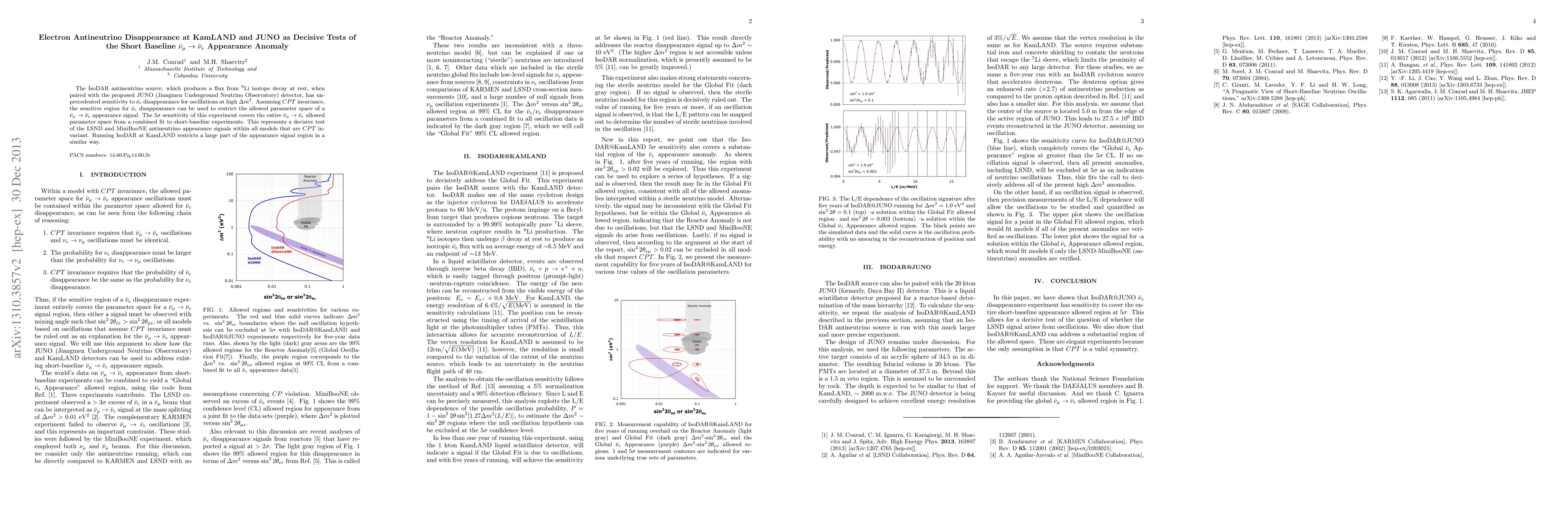 The IsoDAR antineutrino source, which produces a flux from 8Li isotope decay at rest, when paired with the proposed JUNO (Jiangmen Underground Neutrino Observatory) detector, has unprecedented sensitivity to anti-nu_e disappearance for oscillations at high Delta m^2. Assuming CPT invariance, the sensitive region for anti-nu_e disappearance can be used to restrict the allowed parameter space of an anti-nu_mu to anti-nu_e appearance signal. The 5 sigma sensitivity of this experiment covers the entire anti-nu_mu to anti-nu_e allowed parameter space from a combined fit to short-baseline experiments. This represents a decisive test of the LSND and MiniBooNE antineutrino appearance signals within all models that are $CPT$ invariant. Running IsoDAR at KamLAND restricts a large part of the appearance signal region in a similar way.