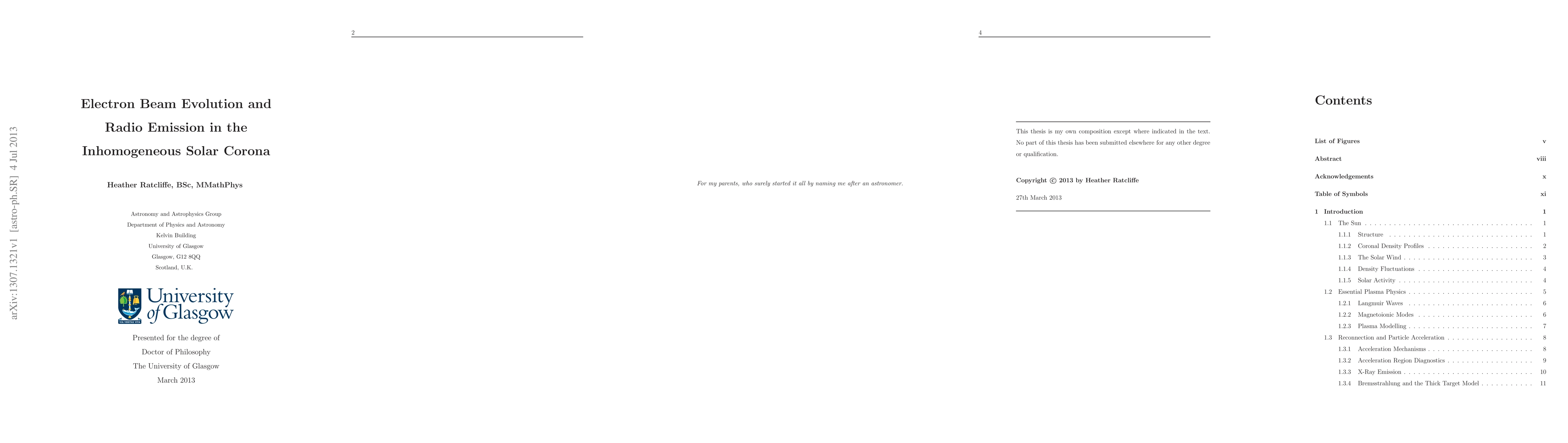 This research explores the evolution of electron beams in the inhomogeneous solar corona, focusing on wave-particle interactions and plasma density effects, and their impact on the generation of hard X-ray and radio emissions.