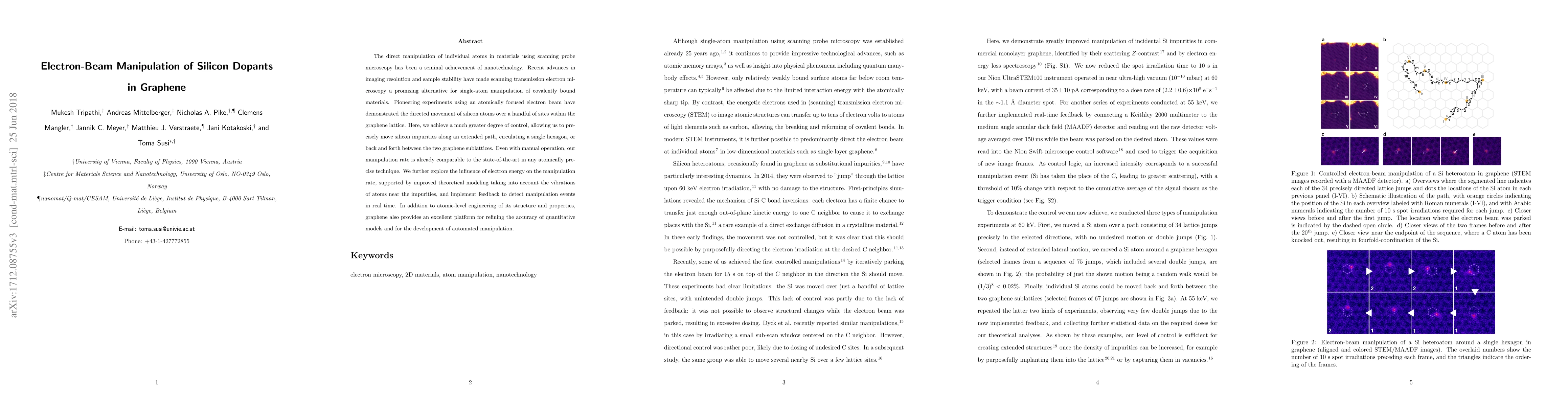This paper demonstrates the precise manipulation of silicon dopants in graphene using a focused electron beam, achieving greater control than previous methods. It explores the effects of electron energy and implements real-time feedback, paving the way for atomic-level engineering and the development of automated manipulation techniques.