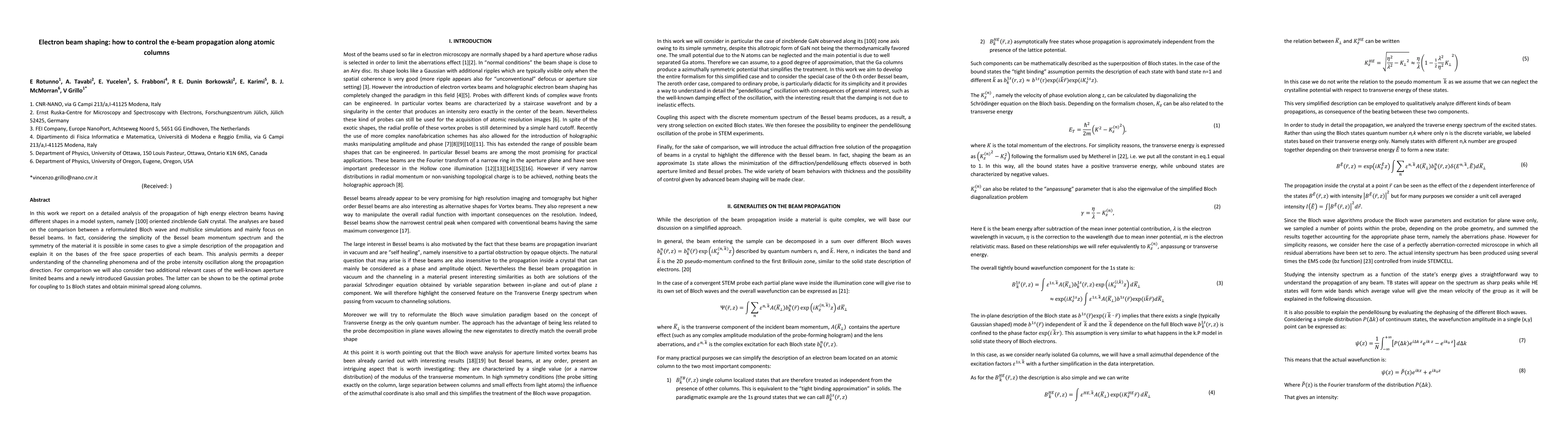 Researchers analyzed electron beam propagation in zincblende GaN crystals using Bessel beams and found them to be optimal for coupling with 1s Bloch states, minimizing spread along columns.