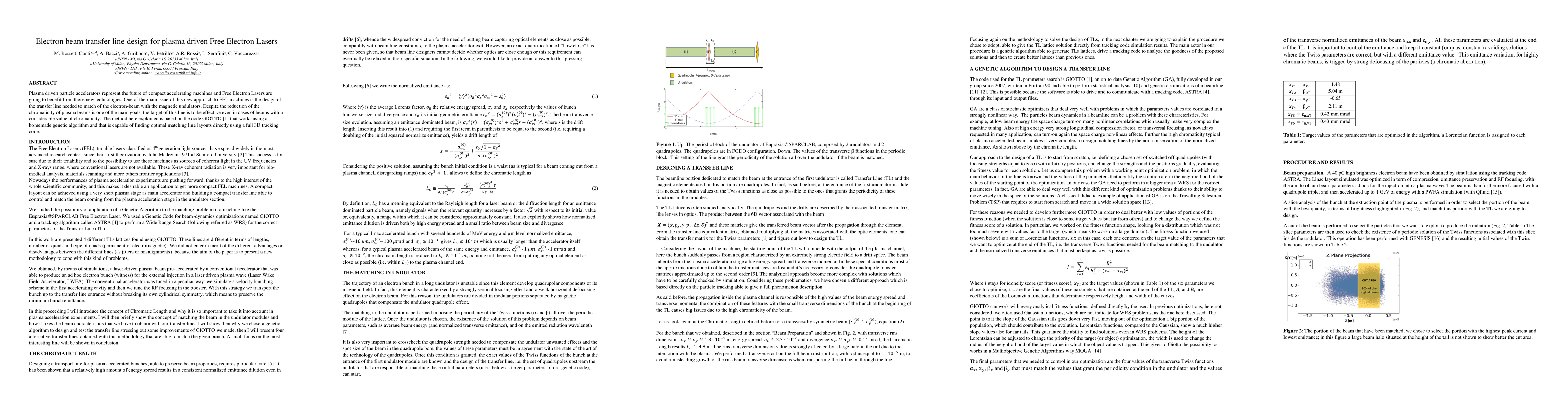 This paper discusses the design of electron beam transfer lines for plasma-driven Free Electron Lasers, focusing on matching the electron beam with magnetic undulators despite high chromaticity. The proposed method utilizes the GIOTTO code, which employs a genetic algorithm to optimize the transfer line layout using a full 3D tracking simulation.