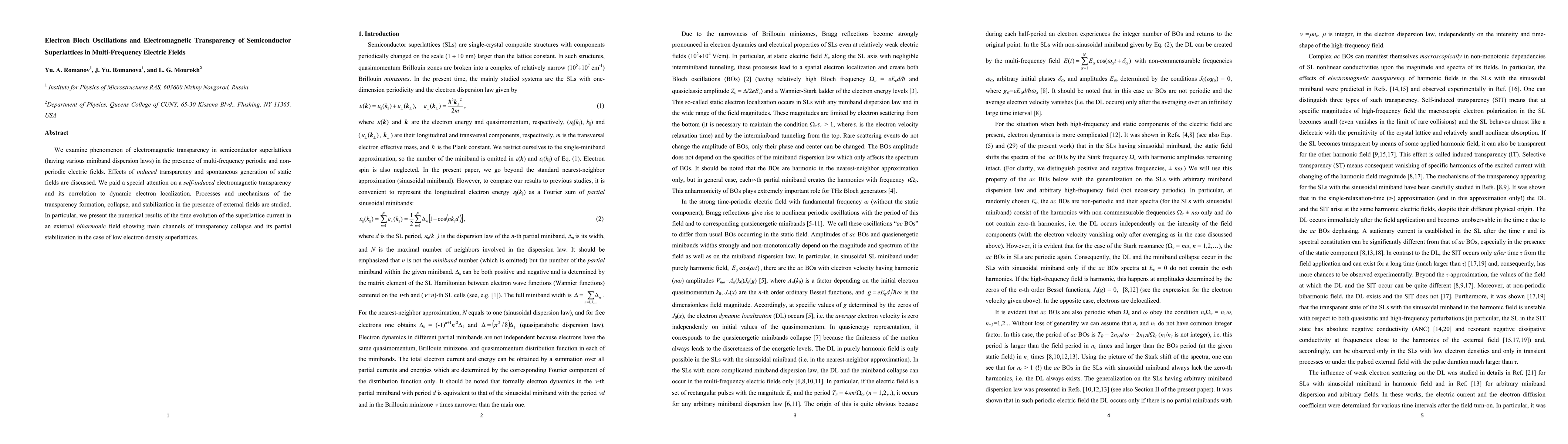 We examine phenomenon of electromagnetic transparency in semiconductor superlattices (having various miniband dispersion laws) in the presence of multi-frequency periodic and non-periodic electric fields. Effects of induced transparency and spontaneous generation of static fields are discussed. We paid a special attention on a self-induced electromagnetic transparency and its correlation to dynamic electron localization. Processes and mechanisms of the transparency formation, collapse, and stabilization in the presence of external fields are studied. In particular, we present the numerical results of the time evolution of the superlattice current in an external biharmonic field showing main channels of transparency collapse and its partial stabilization in the case of low electron density superlattices.