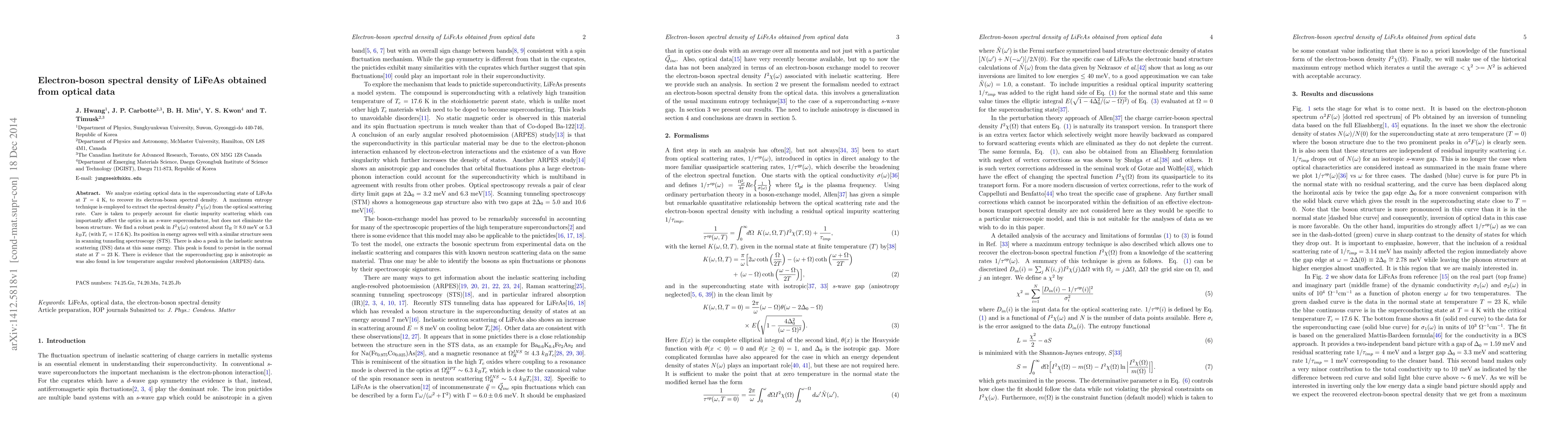 This study uses optical data to determine the electron-boson spectral density in LiFeAs, revealing a peak at 8.0 meV, consistent with scanning tunneling and neutron scattering data, suggesting an underlying bosonic resonance linked to superconductivity. Evidence of an anisotropic superconducting gap is also found, aligning with ARPES results.
