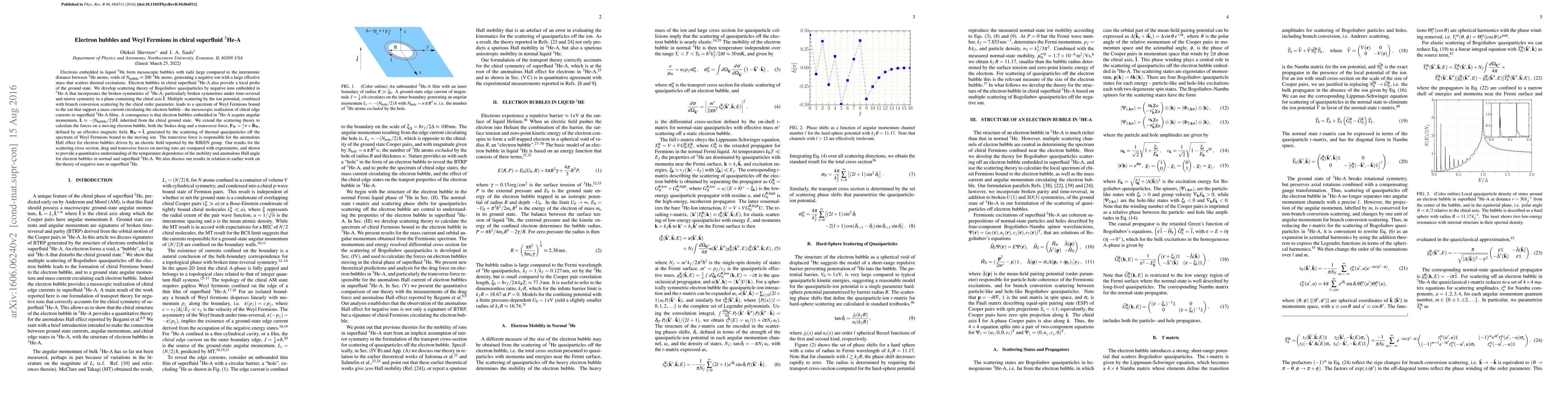 The research explores electron bubbles in chiral superfluid $^3$He-A, revealing that these bubbles host Weyl Fermions bound to negative ions, generating chiral edge currents. The study develops a scattering theory to explain the forces on moving electron bubbles, including a transverse force causing an anomalous Hall effect, which aligns with experimental observations by the RIKEN group.