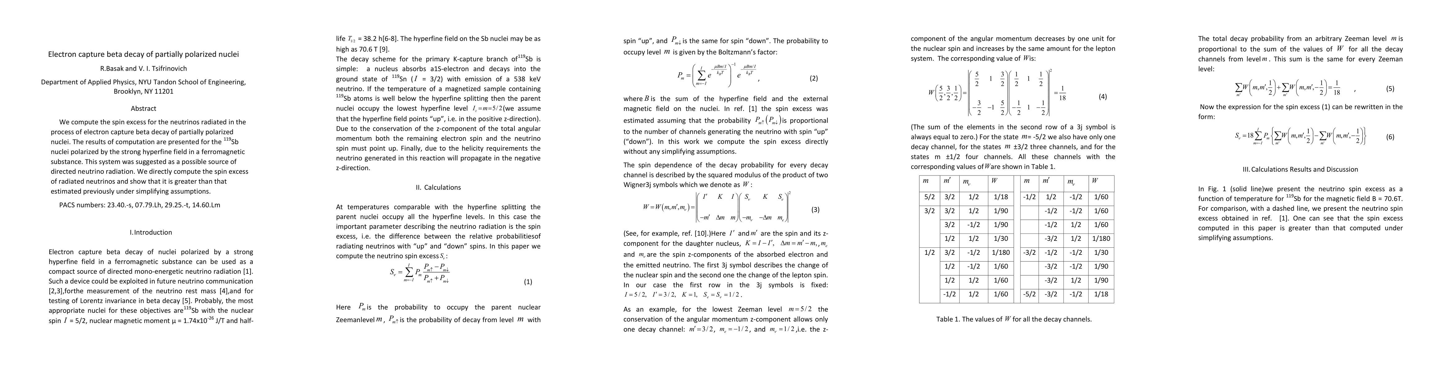 This paper calculates the spin excess of neutrinos emitted during electron capture beta decay in partially polarized $^{119}$Sb nuclei, finding a higher value than previously estimated, suggesting this system could be a significant source of directed neutrino radiation.