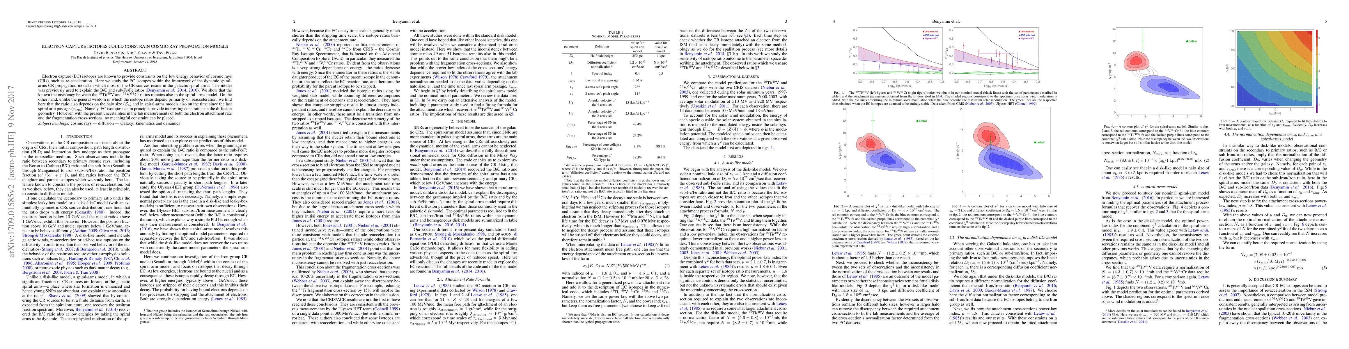 This paper investigates electron-capture isotopes in the context of a dynamic spiral-arms cosmic-ray propagation model, finding that isotope ratios depend on halo size and time since last spiral arm passage, not just reacceleration. Despite potential insights into diffusion geometry, current measurement uncertainties prevent precise constraints.
