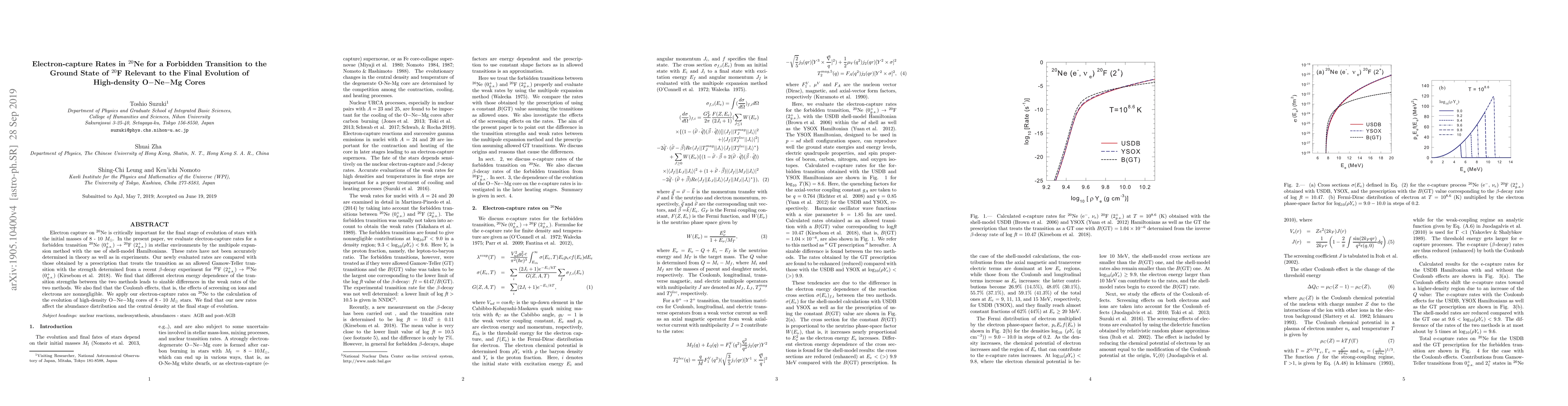 This paper evaluates electron capture rates for a forbidden transition in $^{20}$Ne to $^{20}$F, crucial for the evolution of 8-10 $M_{\odot}$ stars. The new rates, derived using the multipole expansion method, show significant differences from existing methods, especially in electron energy dependence, and highlight the importance of Coulomb effects.