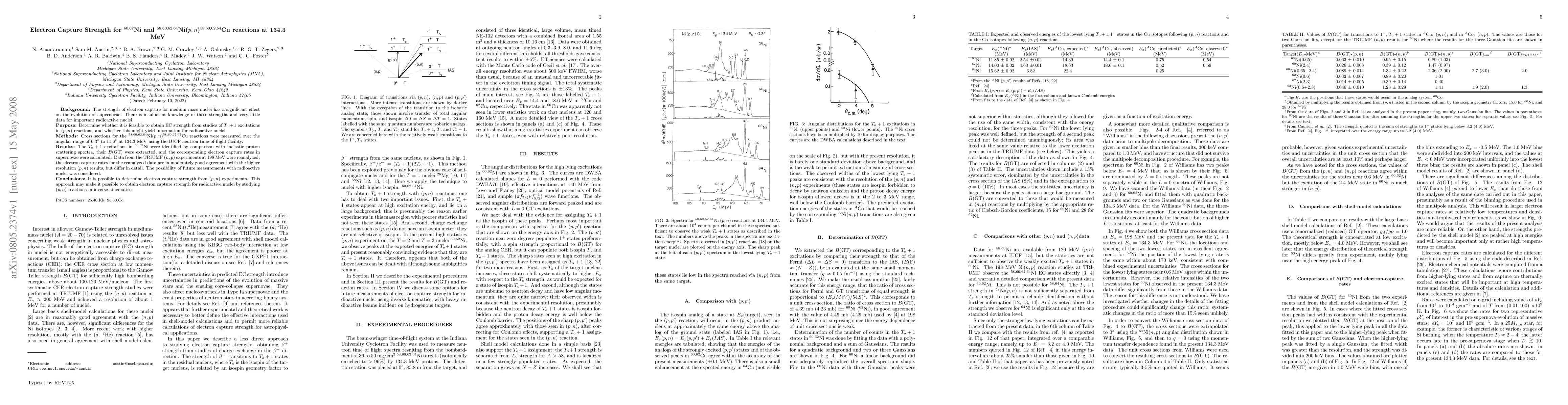 Background: The strength of electron capture for medium mass nuclei has a significant effect on the evolution of supernovae. There is insufficient knowledge of these strengths and very little data for important radioactive nuclei. Purpose: Determine whether it is feasible to obtain EC strength from studies of T_o+1 excitations in (p,n) reactions, and whether this might yield information for radioactive nuclei. Methods: Cross sections for the {58,60,62,64}Ni(p,n){58,60,62,64}Cu reactions were measured over the angular range of 0.3 deg to 11.6 deg at 134.3 MeV using the IUCF neutron time-of-flight facility. esults: The T_o+1 excitations in {60,62}Ni were identified by comparison with inelastic proton scattering spectra, their B(GT) were extracted, and the corresponding electron capture rates in supernovae were calculated. Data from the TRIUMF (n,p) experiments at 198 MeV were reanalyzed; the electron capture rates for the reanalyzed data are in moderately good agreement with the higher resolution (p,n) results, but differ in detail. The possibility of future measurements with radioactive nuclei was considered. Conclusions: It is possible to determine electron capturestrength from (p,n) experiments. This approach may make it possible to obtain electron capture strength for radioactive nuclei by studying (p,n) reactions in inverse kinematics.