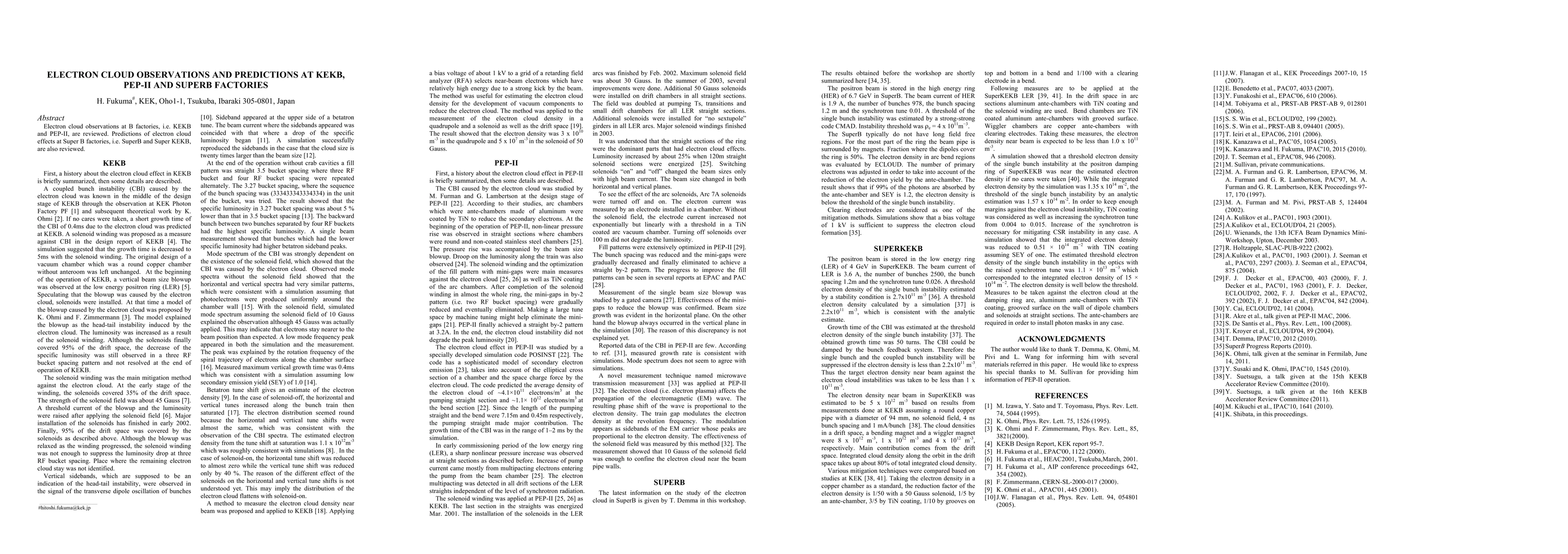 Electron cloud observations at B factories, i.e. KEKB and PEP-II, are reviewed. Predictions of electron cloud effects at Super B factories, i.e. SuperB and Super KEKB, are also reviewed.