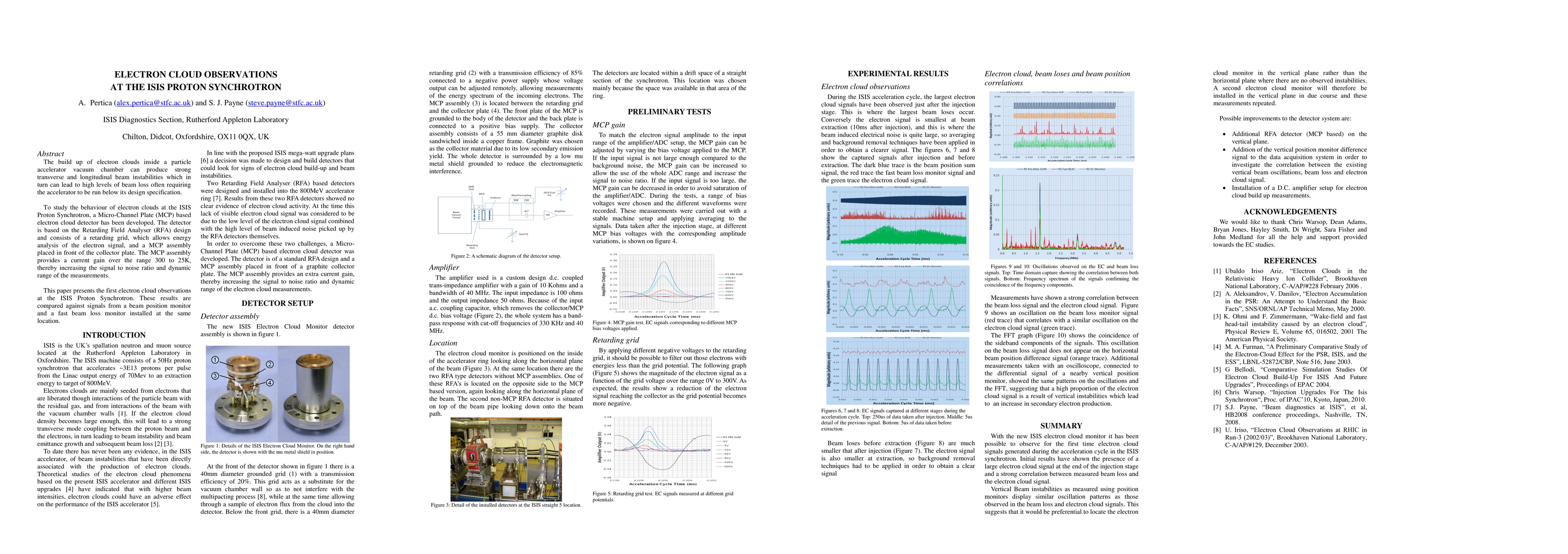 This paper reports on the first observations of electron clouds inside the ISIS Proton Synchrotron using a novel Micro-Channel Plate (MCP) based electron cloud detector. The study aims to understand the impact of electron clouds on beam instabilities and loss, comparing the detector's signals with those from a beam position monitor and a fast beam loss monitor.