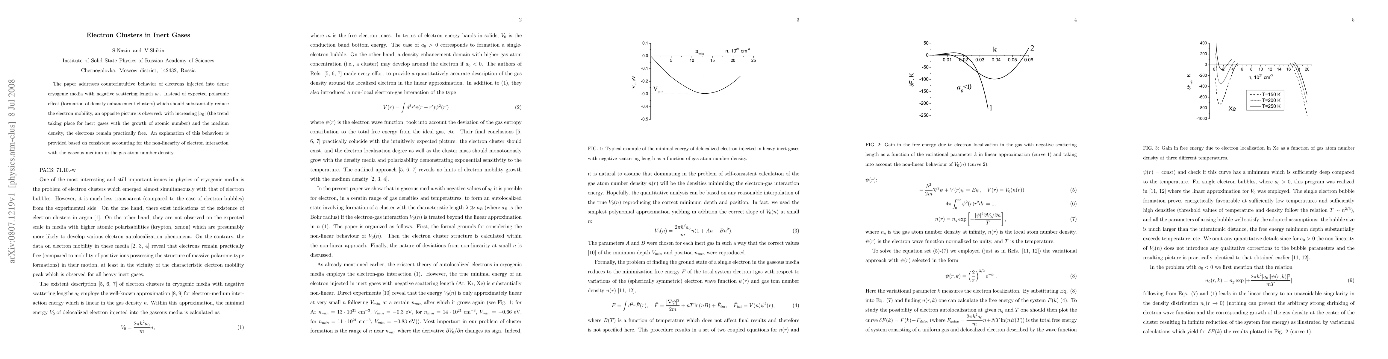 The paper addresses counterintuitive behavior of electrons injected into dense cryogenic media with negative scattering length $a_0$. Instead of expected polaronic effect (formation of density enhancement clusters) which should substantially reduce the electron mobility, an opposite picture is observed: with increasing $|a_0|$ (the trend taking place for inert gases with the growth of atomic number) and the medium density, the electrons remain practically free. An explanation of this behaviour is provided based on consistent accounting for the non-linearity of electron interaction with the gaseous medium in the gas atom number density.